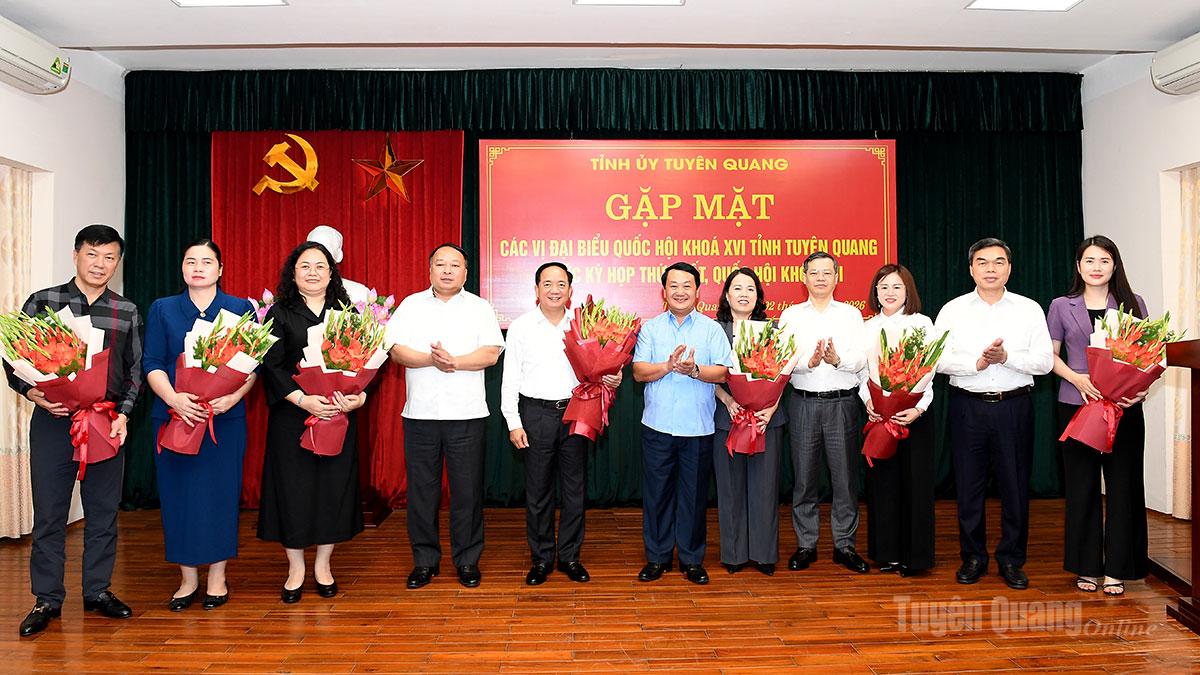 Đồng chí Ngô Đông Hải, Ủy viên Ban Chấp hành Trung ương Đảng, Phó Trưởng ban Tuyên giáo và Dân vận Trung ương cùng các vị đại biểu Quốc hội khóa XVI tỉnh Tuyên Quang dự buổi gặp mặt.