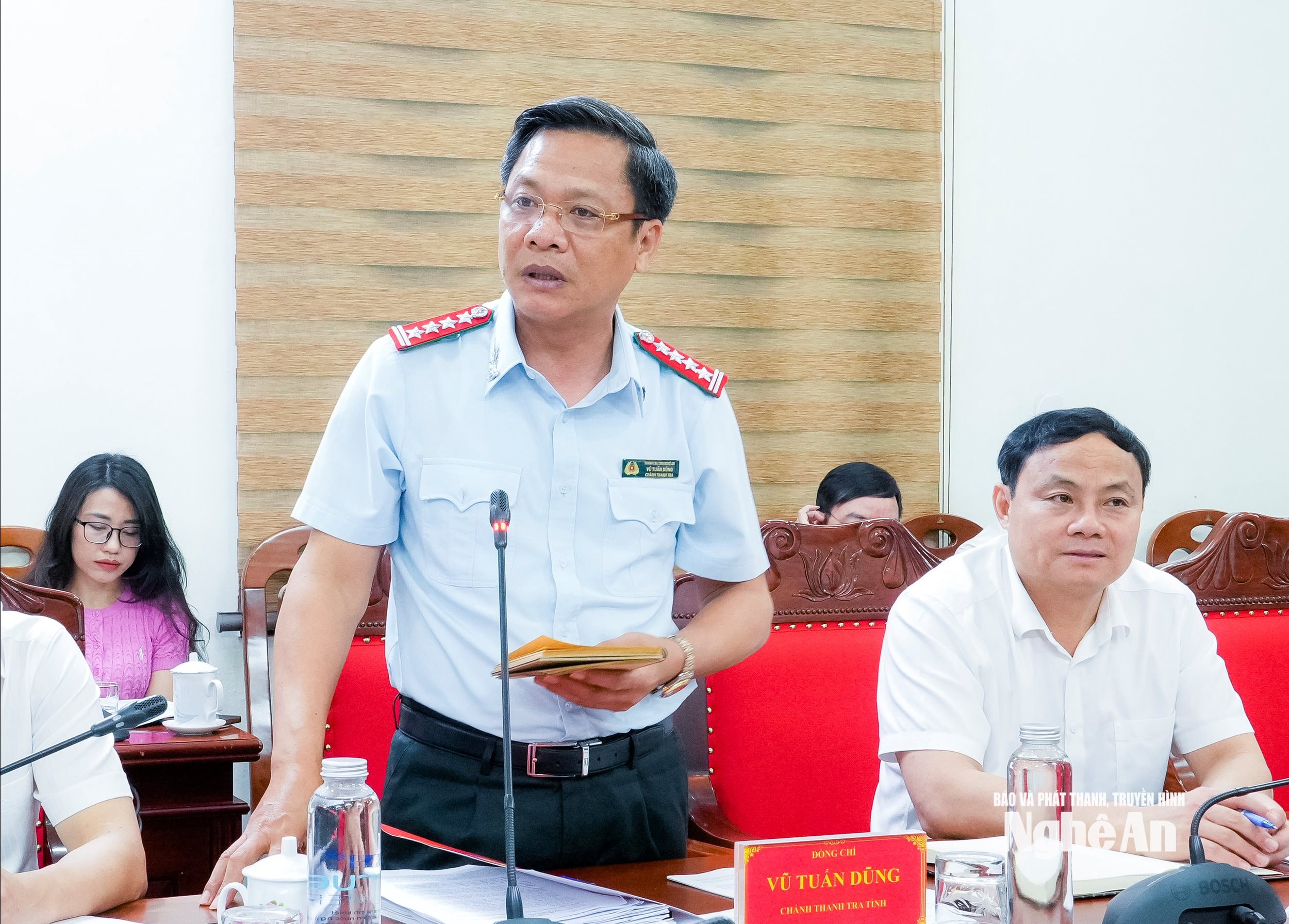 Chánh Thanh tra tỉnh Vũ Tuấn Dũng phát biểu tại hội nghị. Ảnh: Phạm Bằng