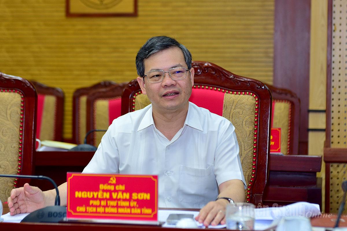Đồng chí Phó Bí thư Tỉnh ủy, Chủ tịch HĐND tỉnh Nguyễn Văn Sơn phát biểu ý kiến tại cuộc họp.