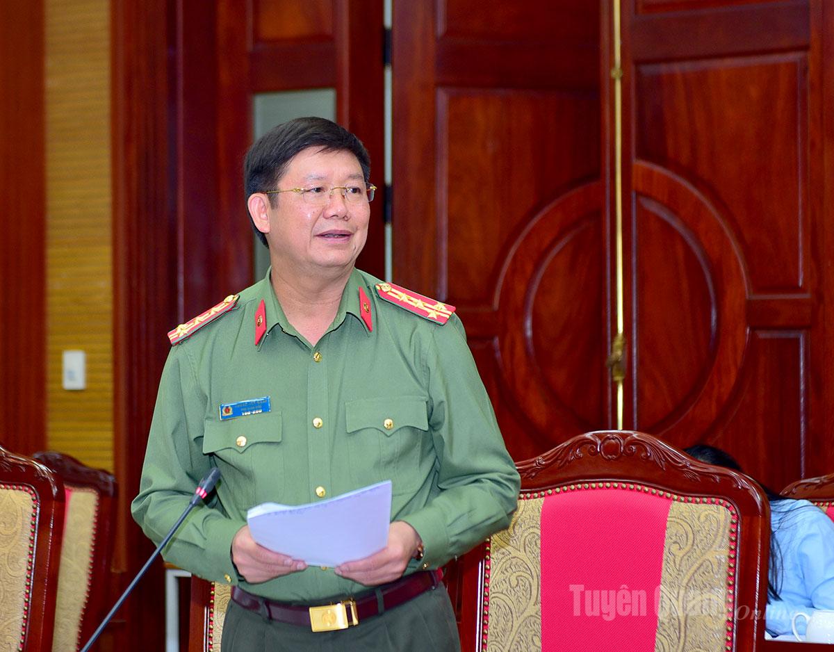 Lãnh đạo Công an tỉnh phát biểu làm rõ thêm những nội dung liên quan về đầu tư xây dựng nhà ở cho lực lượng vũ trang nhân dân tại tổ 9, phường An Tường.