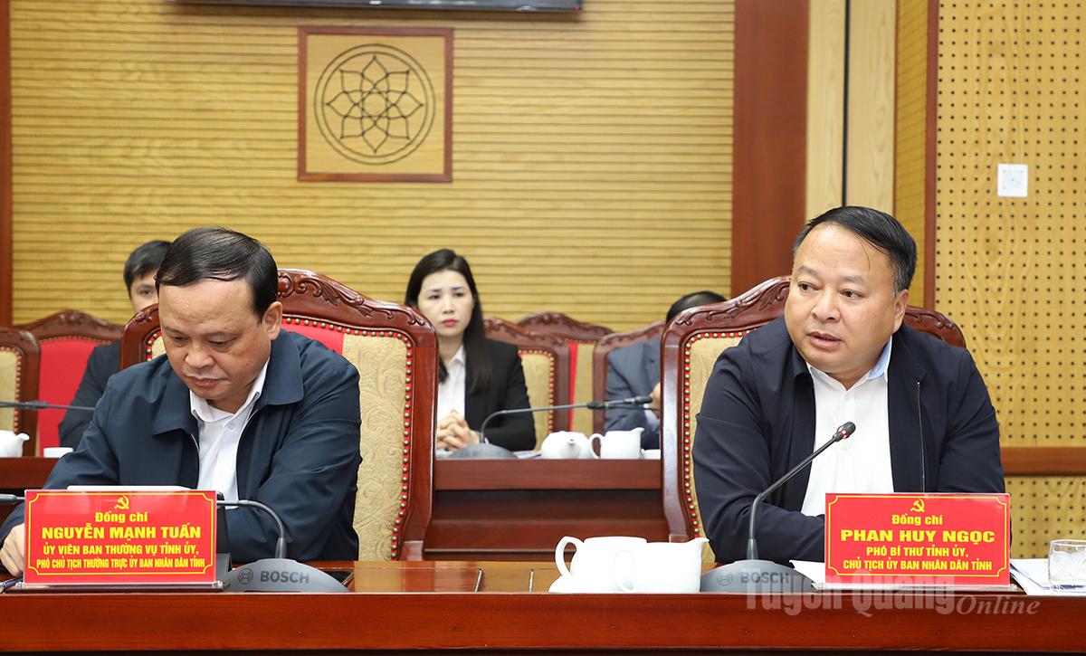 Tại hội nghị, lãnh đạo UBND tỉnh đã báo cáo về tiến độ thực hiện các công trình trọng điểm của tỉnh. Về dự án cao tốc Tuyên Quang – Hà Giang giai đoạn 1 đoạn qua tỉnh Tuyên Quang, đoạn tuyến Km12+500 đến Km77 có độ dài 64,5 km hiện tiến độ chậm so với kế hoạch điều chỉnh, song từ quý IV/2025 các điều kiện thi công đã cơ bản thuận lợi. Hiện nay UBND tỉnh tiếp tục chỉ đạo quyết liệt tăng ca, tăng kíp, kiểm điểm trách nhiệm nhà thầu chậm tiến độ; tập trung mục tiêu thông tuyến trong tháng 1-2026.