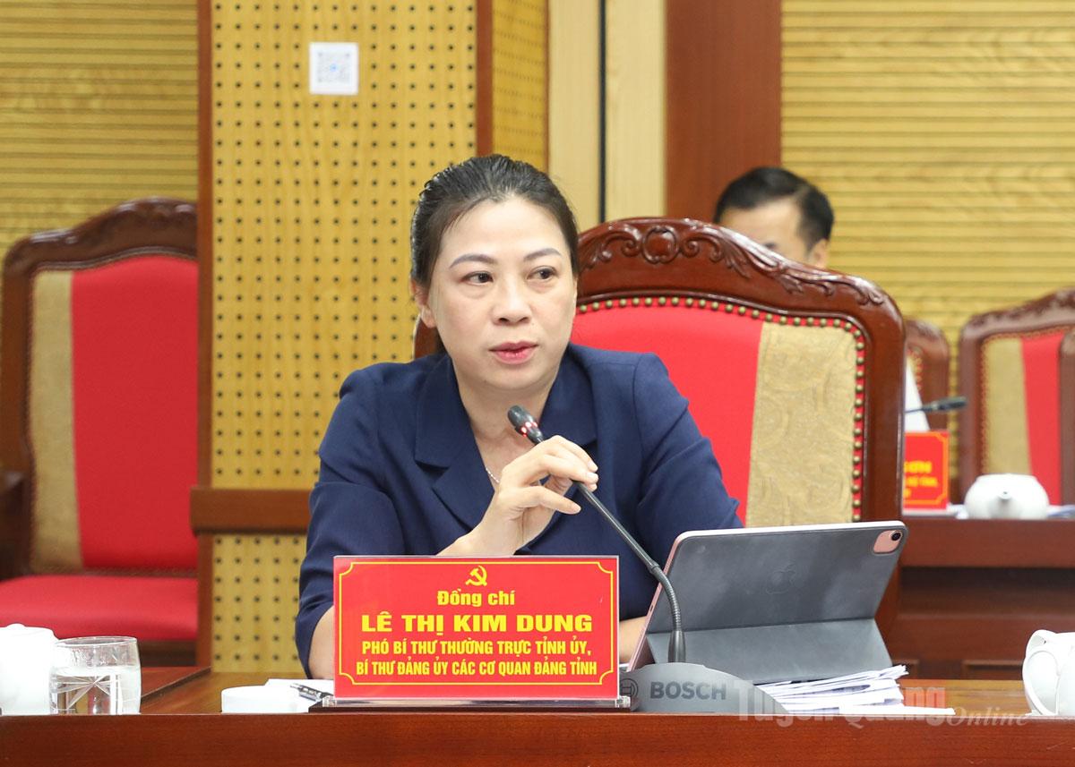 Phó Bí thư Thường trực Tỉnh ủy Lê Thị Kim Dung thảo luận tại phiên họp