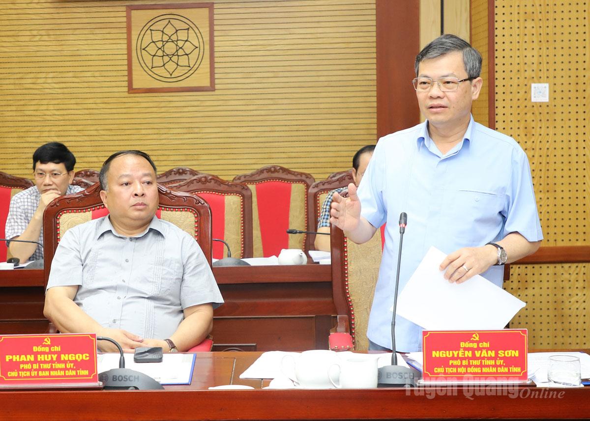 Phó Bí thư Tỉnh ủy, Chủ tịch HĐND tỉnh Nguyễn Văn Sơn thảo luận tại phiên họp.