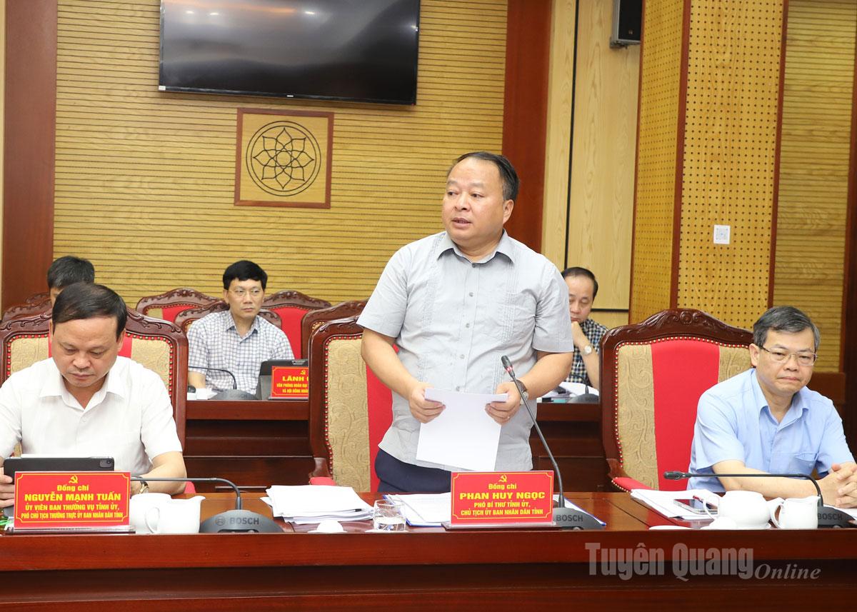 Phó Bí thư Tỉnh ủy, Chủ tịch UBND tỉnh Phan Huy Ngọc thảo luận tại phiên họp.
