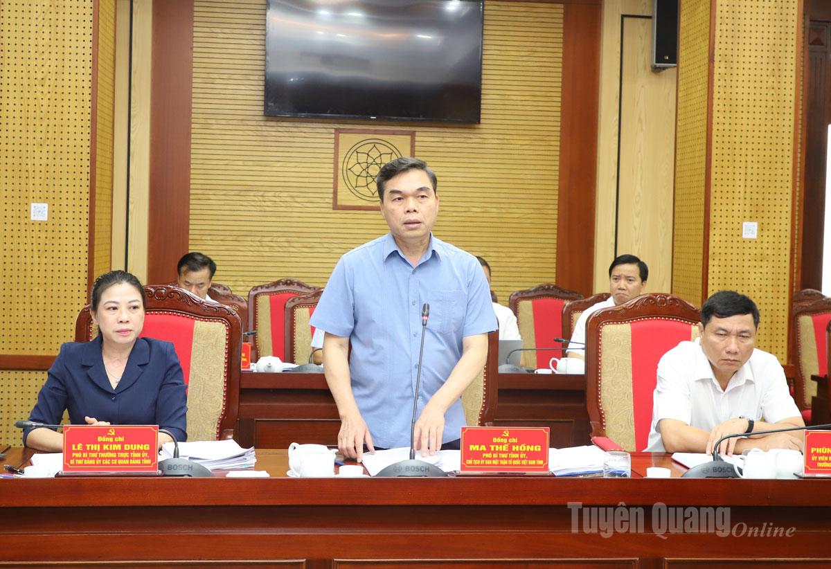 Phó Bí thư Tỉnh ủy, Chủ tịch Ủy ban MTTQ tỉnh Ma Thế Hồng thảo luận tại phiên họp.