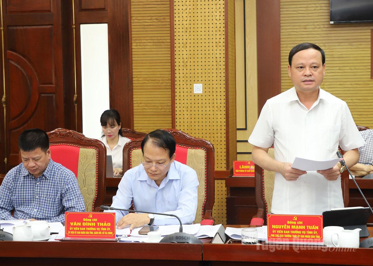 Phó Chủ tịch Thường trực UBND tỉnh Nguyễn Mạnh Tuấn thảo luận tại phiên họp.