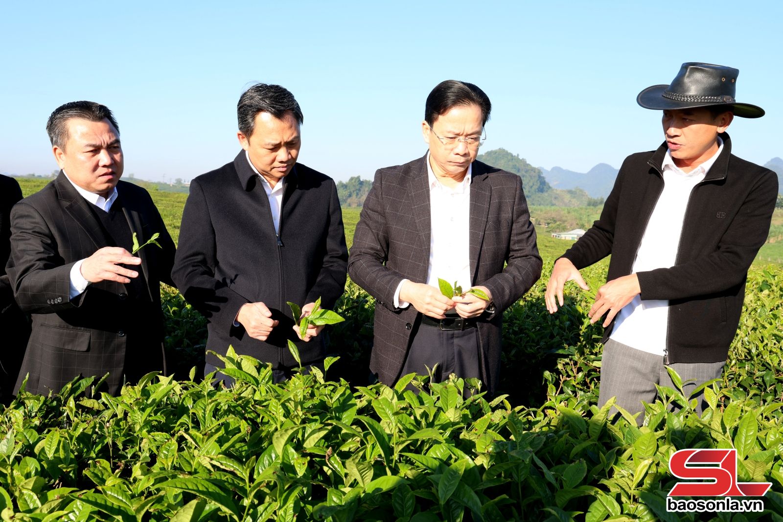 Các đồng chí lãnh đạo tỉnh thăm mô hình du lịch trải nghiệm nông nghiệp tại Khu du lịch Mocha Hill Mộc Châu.