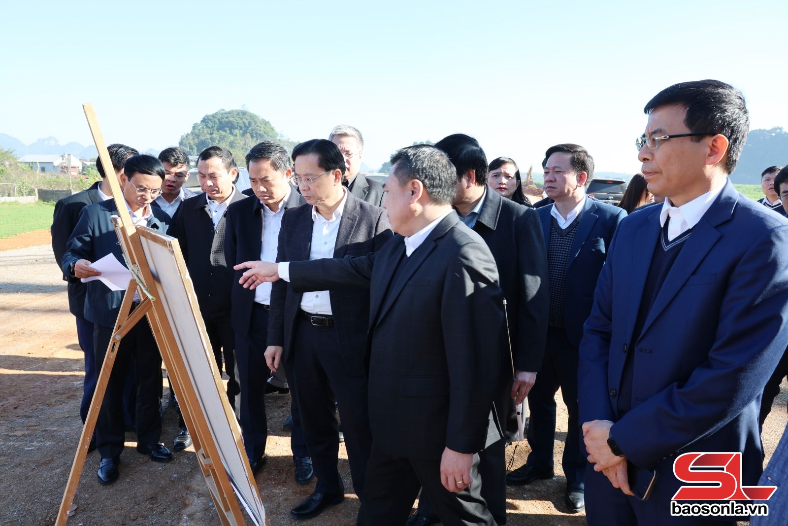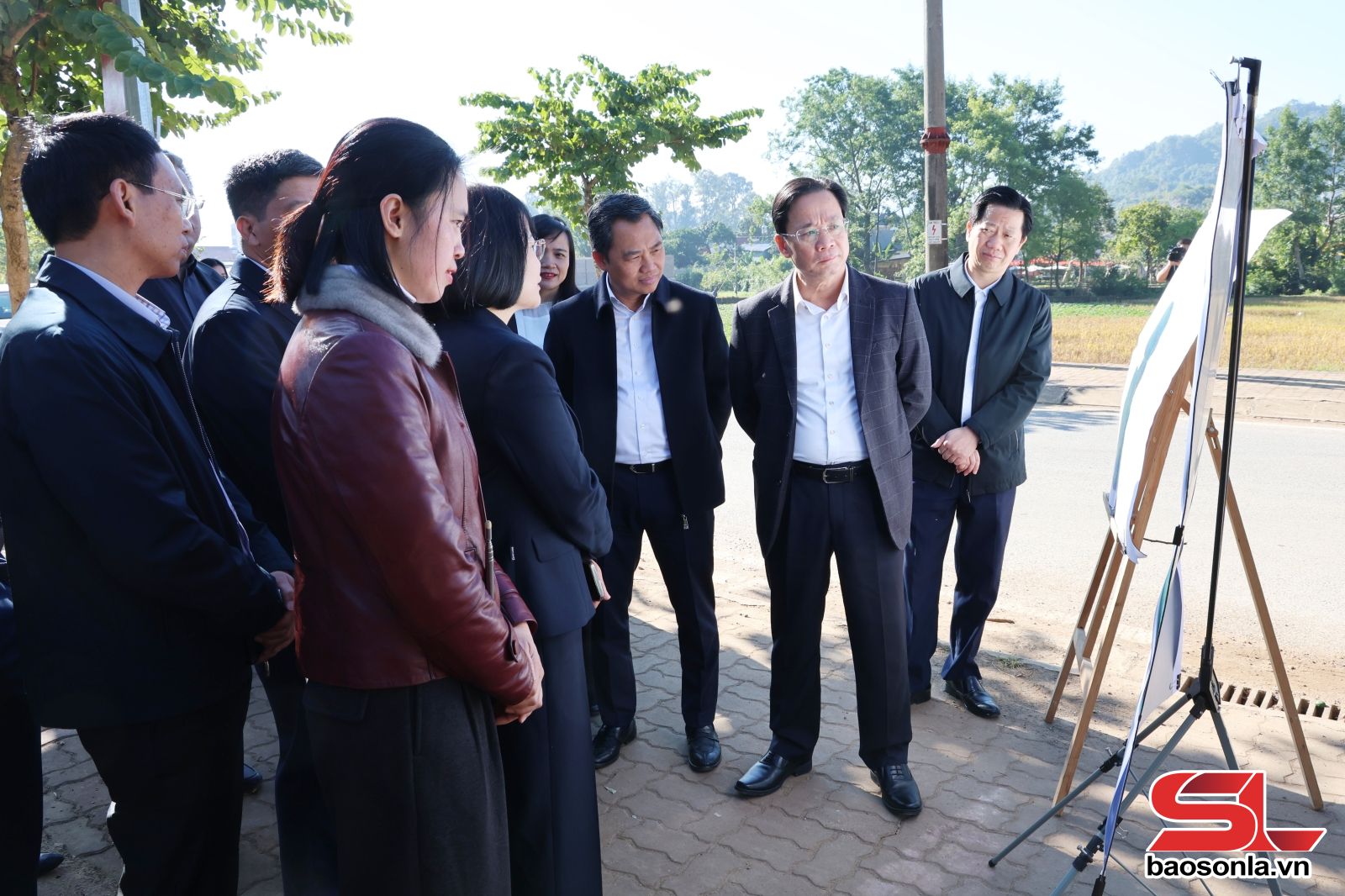 Các đồng chí lãnh đạo tỉnh khảo sát địa điểm dự kiến xây dựng Quảng trường và trụ sở làm việc của Đảng ủy, HĐND, UBND, Ủy ban MTTQ Việt Nam phường Vân Sơn.