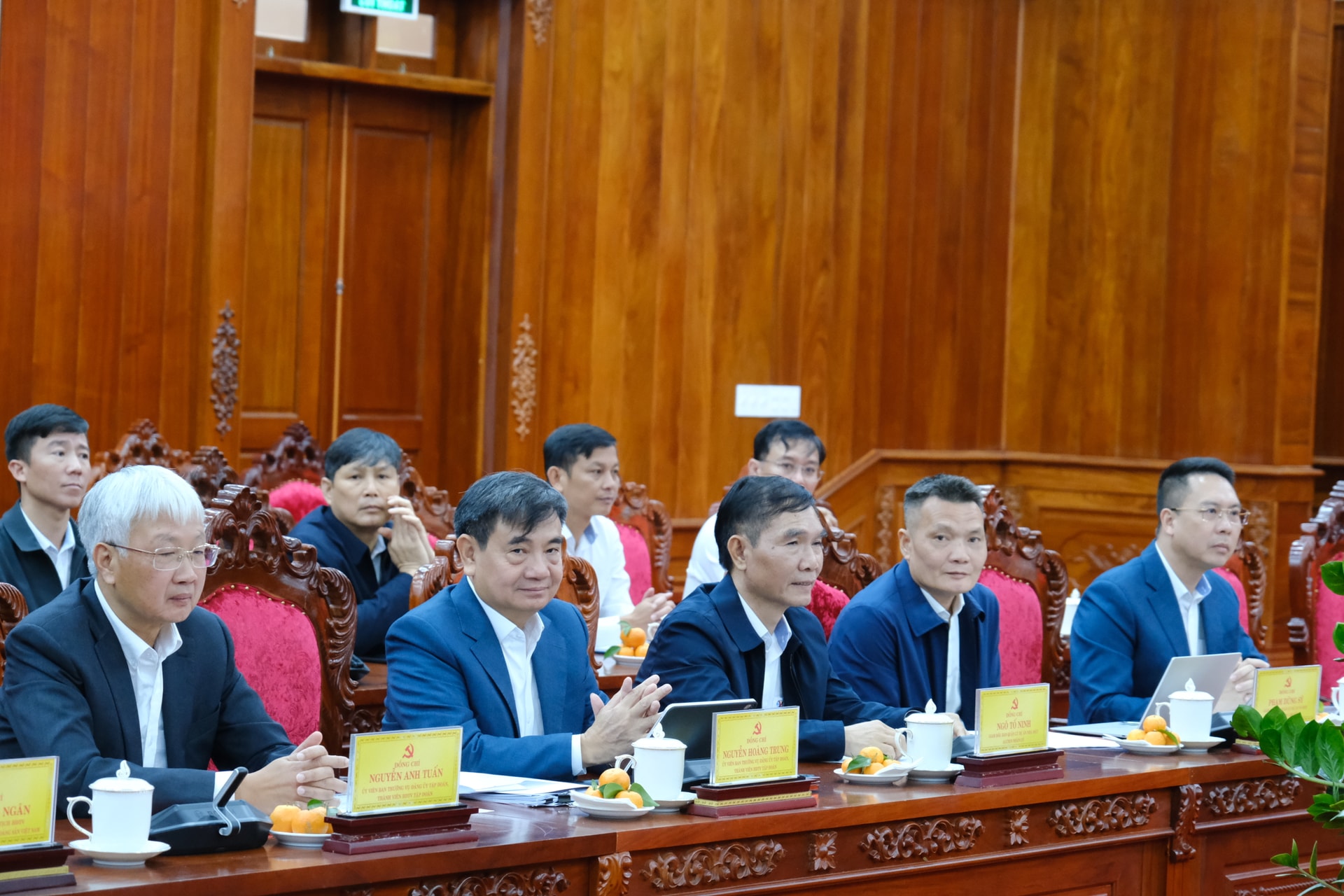 Về phía TKV có các ông: Ngô Hoàng Ngân, Bí thư Đảng ủy, Chủ tịch Hội đồng thành viên Tập đoàn; Vũ Anh Tuấn, Phó Bí thư Đảng ủy, Tổng Giám đốc Tập đoàn, cùng các thành viên Hội đồng thành viên và lãnh đạo các đơn vị trực thuộc.