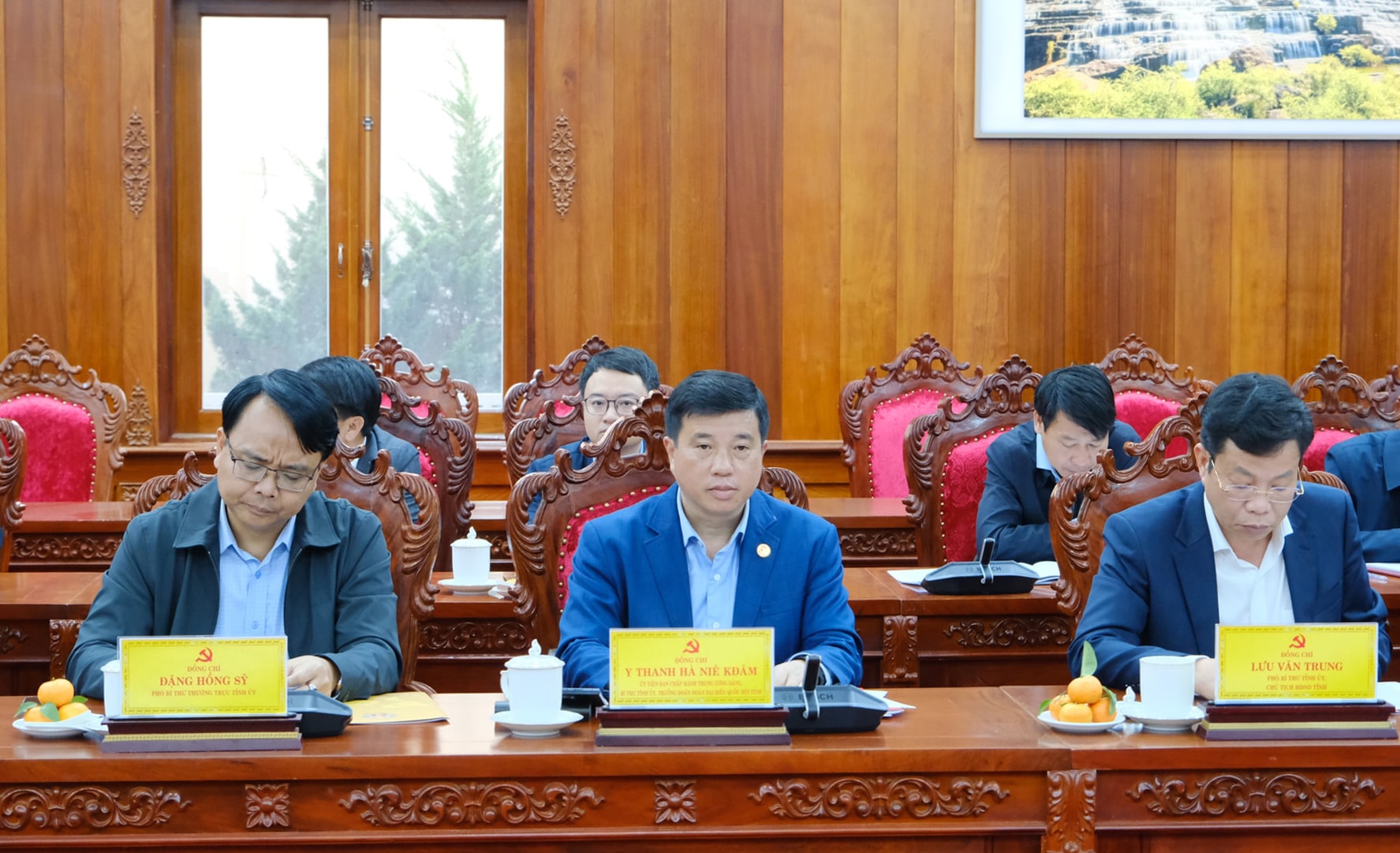 Các đồng chí: Y Thanh Hà Niê Kđăm, Ủy viên Ban Chấp hành Trung ương Đảng, Bí thư Tỉnh ủy, Trưởng Đoàn ĐBQH tỉnh Lâm Đồng; Đặng Hồng Sỹ, Phó Bí thư Thường trực Tỉnh ủy; Lưu Văn Trung, Phó Bí thư Tỉnh ủy, Chủ tịch HĐND tỉnh tham dự buổi làm việc