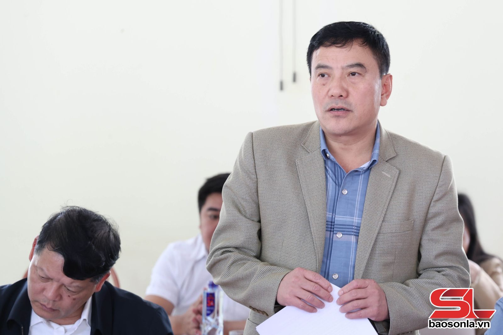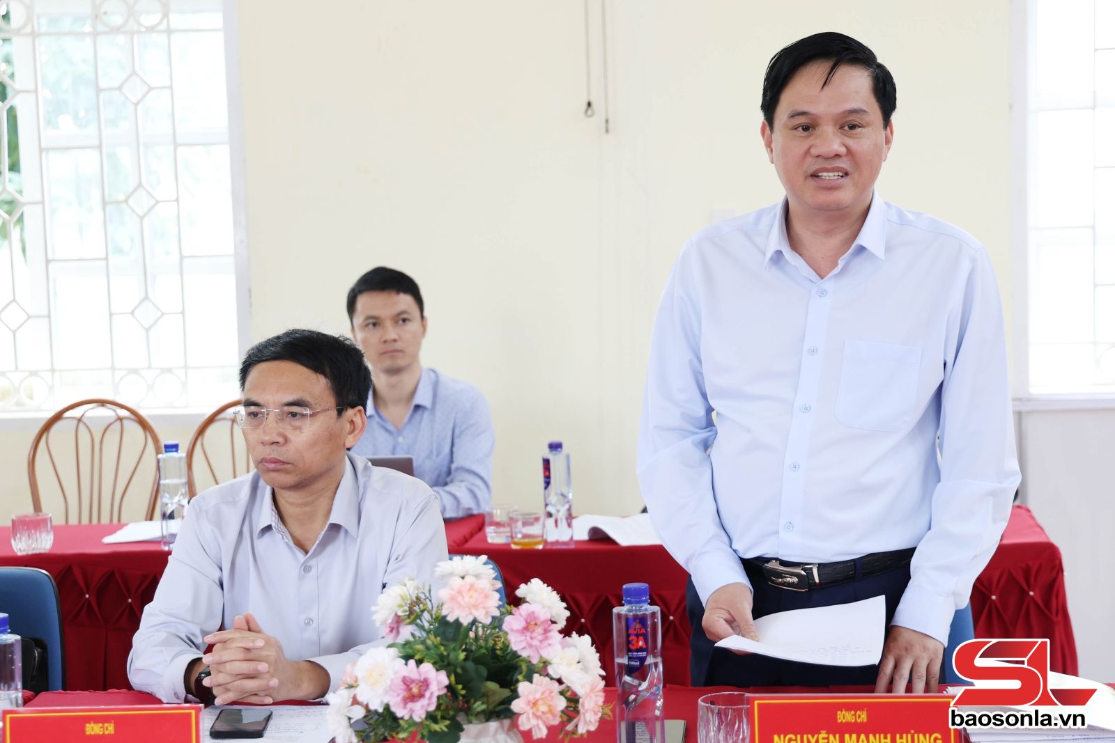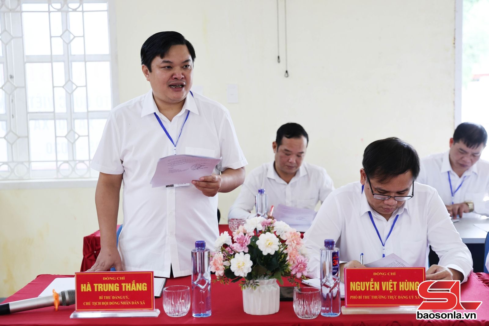 Bí thư Đảng ủy xã Mường Bám báo cáo tại cuộc làm việc.