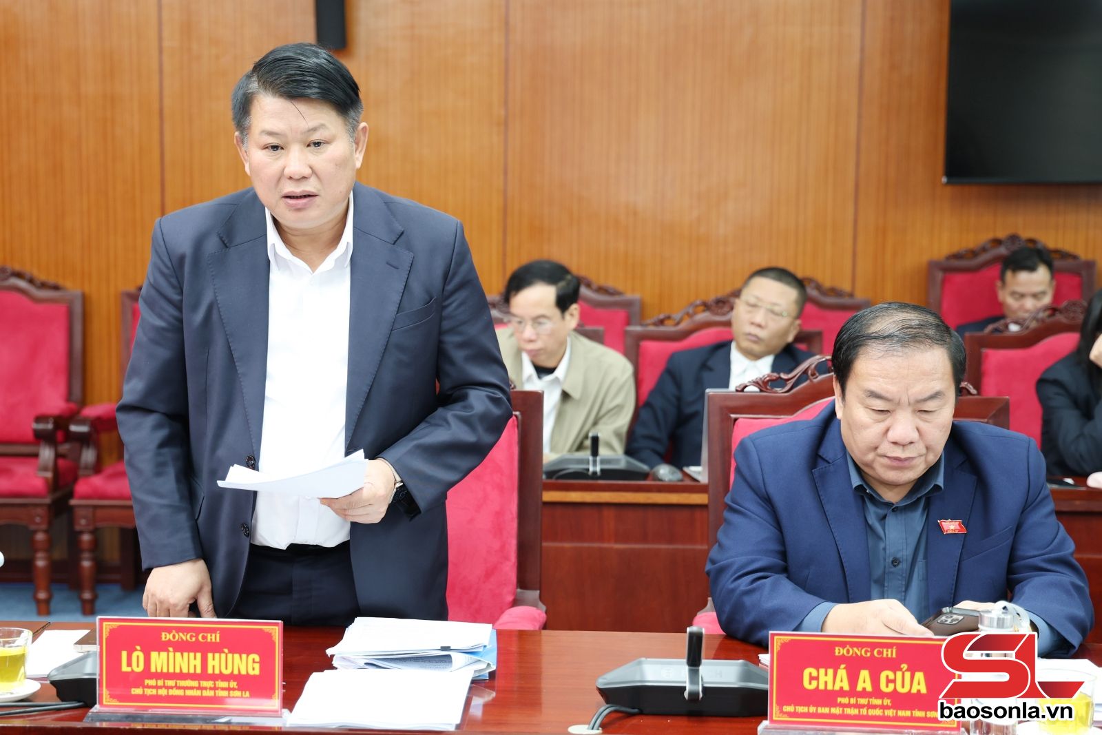 Lãnh đạo các sở đã kiến nghị Ban Thường vụ Tỉnh ủy, UBND tỉnh chỉ đạo các cấp ủy đảng, các ngành, các cấp tập trung cao triển khai các nhiệm vụ, giải pháp quyết liệt, để tháo gỡ các khó khăn, vướng mắc, thúc đẩy giải ngân vốn đầu tư công; cho chủ trương thực hiện Nghị quyết về di chuyển đàn bò sữa trên cao nguyên Mộc Châu; ban hành văn bản hướng dẫn thực hiện đối chiếu quy hoạch chung, quy hoạch sử dụng đất cấp huyện cũ, quy hoạch phân khu đối với các khu vực chưa đồng bộ các quy hoạch hiện có để chuyển mục đích sử dụng đất cho các hộ gia đình, cá nhân theo yêu cầu. Đồng thời, chỉ đạo rà soát, đánh giá, đồng bộ, khắc phục các bất cập trong hệ thống giải quyết thủ tục hành chính trên hệ thống một cửa, một cửa liên thông. Đề nghị Bộ Tài chính báo cáo Thủ tướng Chính phủ bố trí kinh phí để triển khai đầu tư xây dựng nâng cấp, mở rộng tuyến đường bộ cao tốc Hòa Bình - Mộc Châu, đoạn tuyến thuộc địa bàn tỉnh Sơn La từ 2 làn xe lên 4 làn xe trong giai đoạn 2026 - 2030; kiến nghị cho phép triển khai đoạn từ Mộc Châu - thành phố Sơn La; chỉ đạo triển khai phát triển các dự án năng lượng trên địa bàn tỉnh đảm bảo tiến độ theo quy hoạch và kế hoạch thực hiện Quy hoạch phát triển điện lực Quốc gia thời kỳ 2021 - 2030, tầm nhìn đến năm 2050…