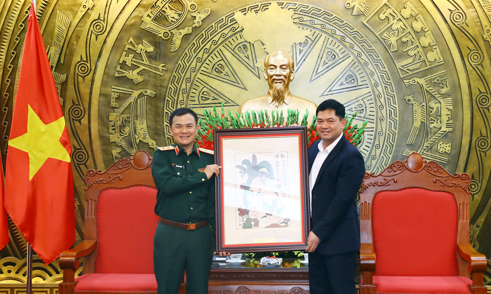 Bí thư Tỉnh ủy Nguyễn Hồng Thái tặng quà lưu niệm cho Đoàn công tác Tập đoàn Viettel.