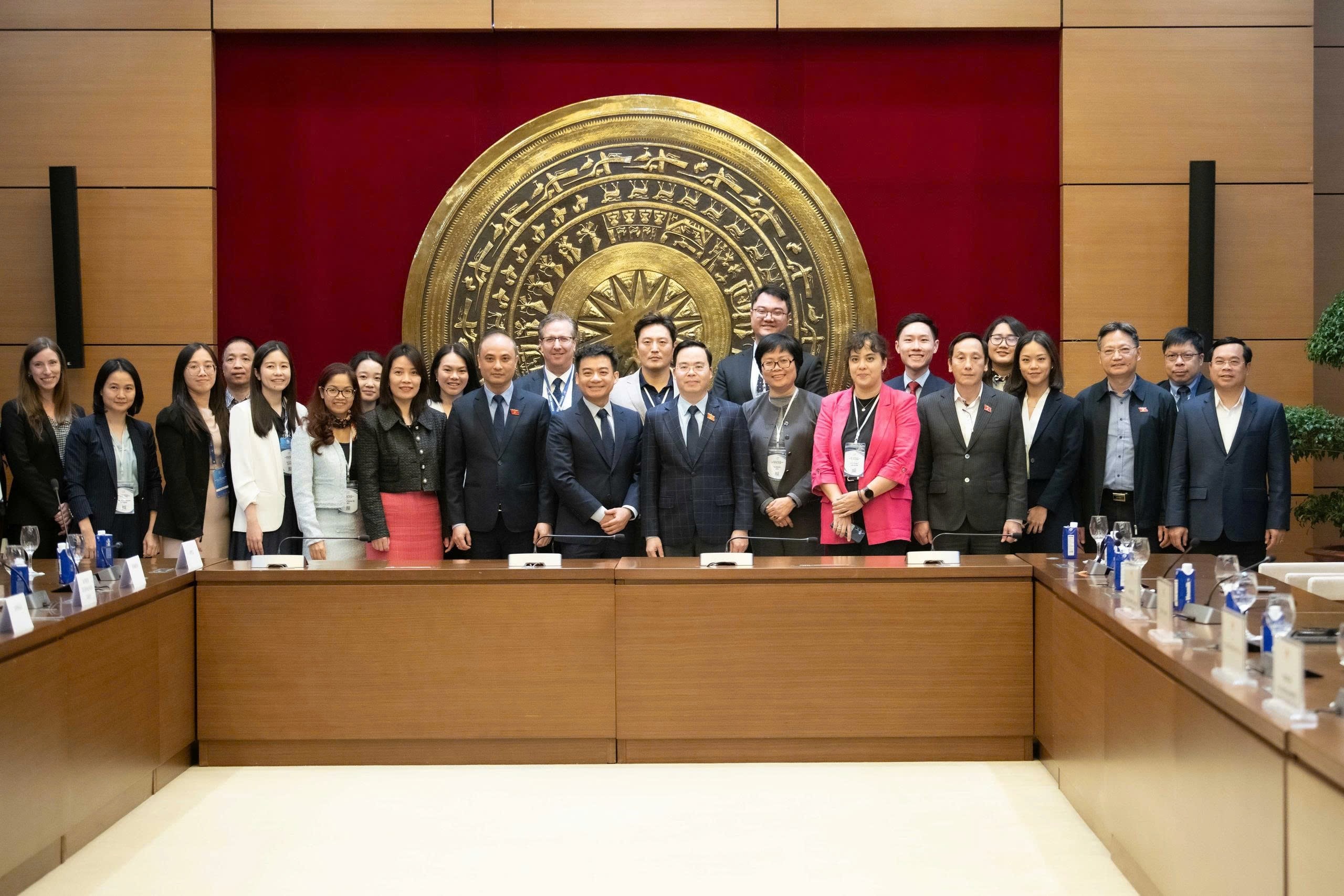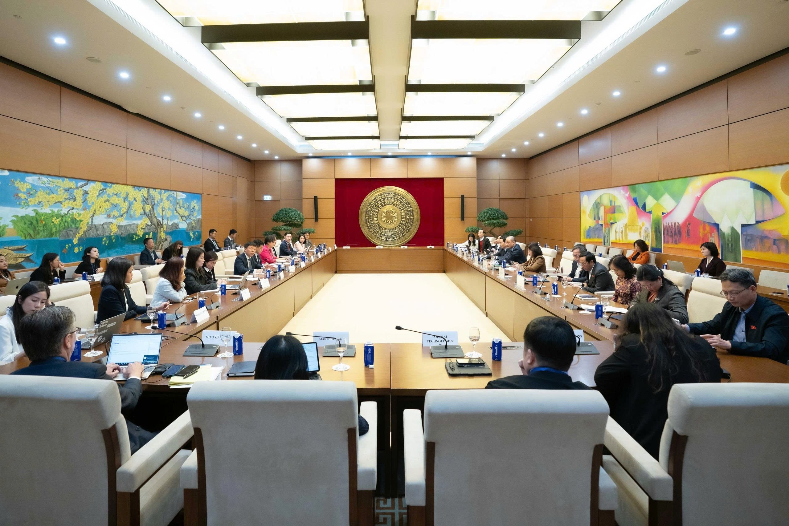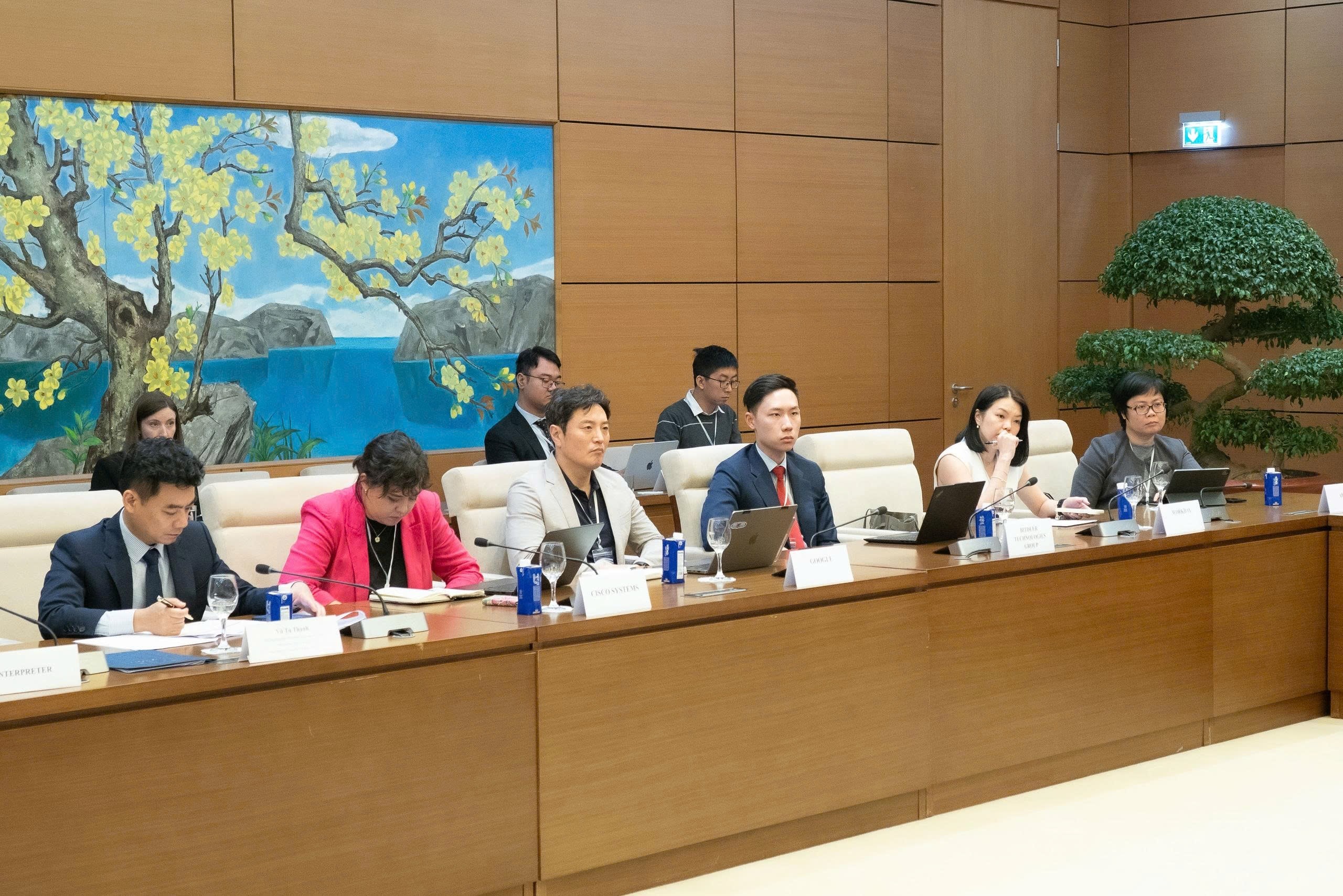 Tại cuộc làm việc, hai bên đã trao đổi, thảo luận về việc cải thiện các nền tảng của hệ sinh thái số bền vững và thúc đẩy thực hiện các ưu tiên đề ra trong Nghị quyết số 57-NQ/TW của Bộ Chính trị về khoa học, công nghệ, đổi mới sáng tạo và chuyển đổi số; các ưu tiên của Quốc hội trong việc thúc đẩy phát triển kinh tế số tại Việt Nam bao gồm các chính sách hỗ trợ ngành công nghiệp công nghệ số và phát triển hạ tầng số; kinh nghiệm thực tiễn tốt nhằm góp phần củng cố khuôn khổ pháp lý, cải thiện môi trường kinh doanh, thúc đẩy nghiên cứu và ứng dụng các công nghệ tiên phong.