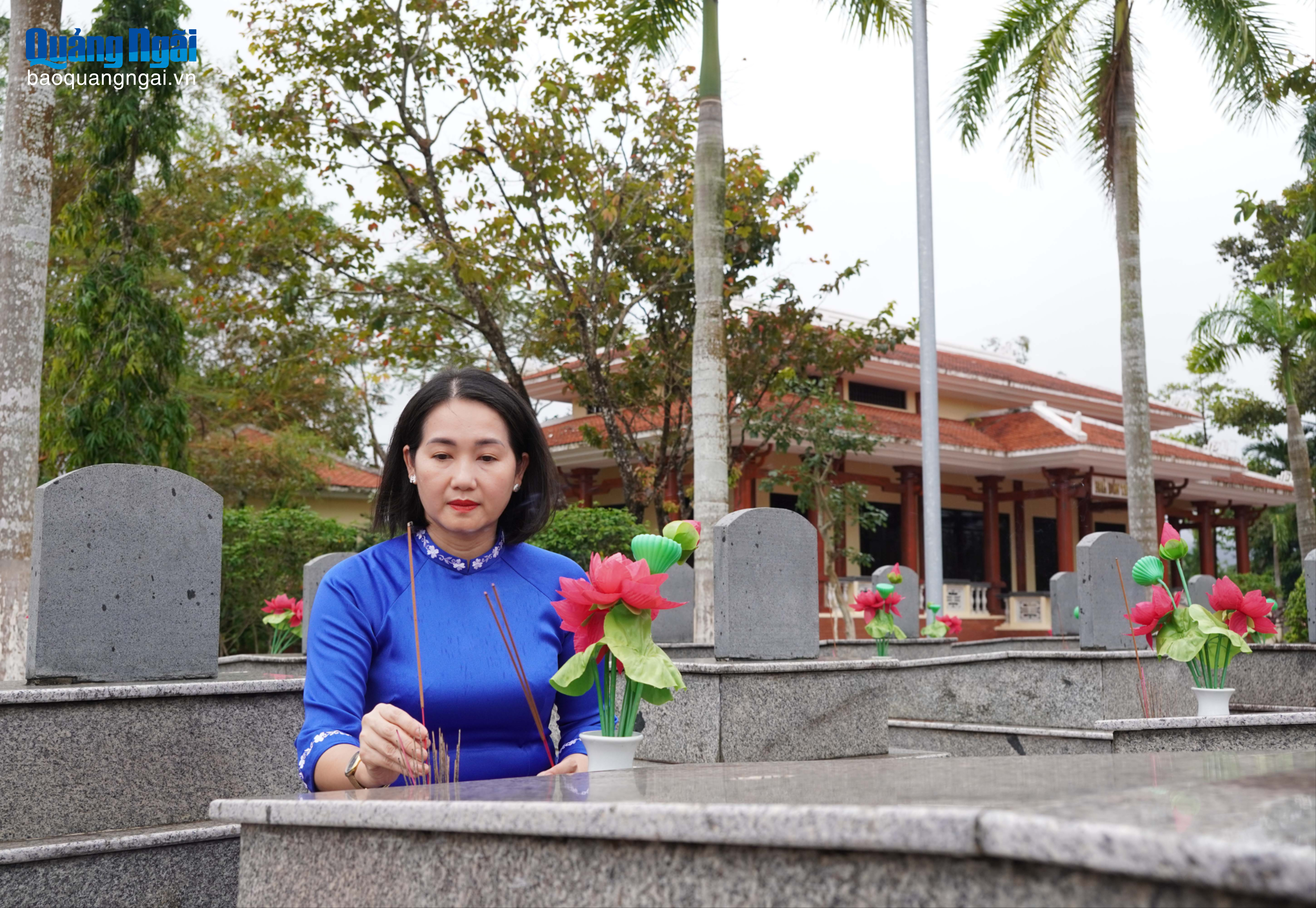 Phó Chủ tịch Ủy ban MTTQ Việt Nam tỉnh Nguyễn Thị Ánh Lan thắp hương tại các phần mộ liệt sĩ.