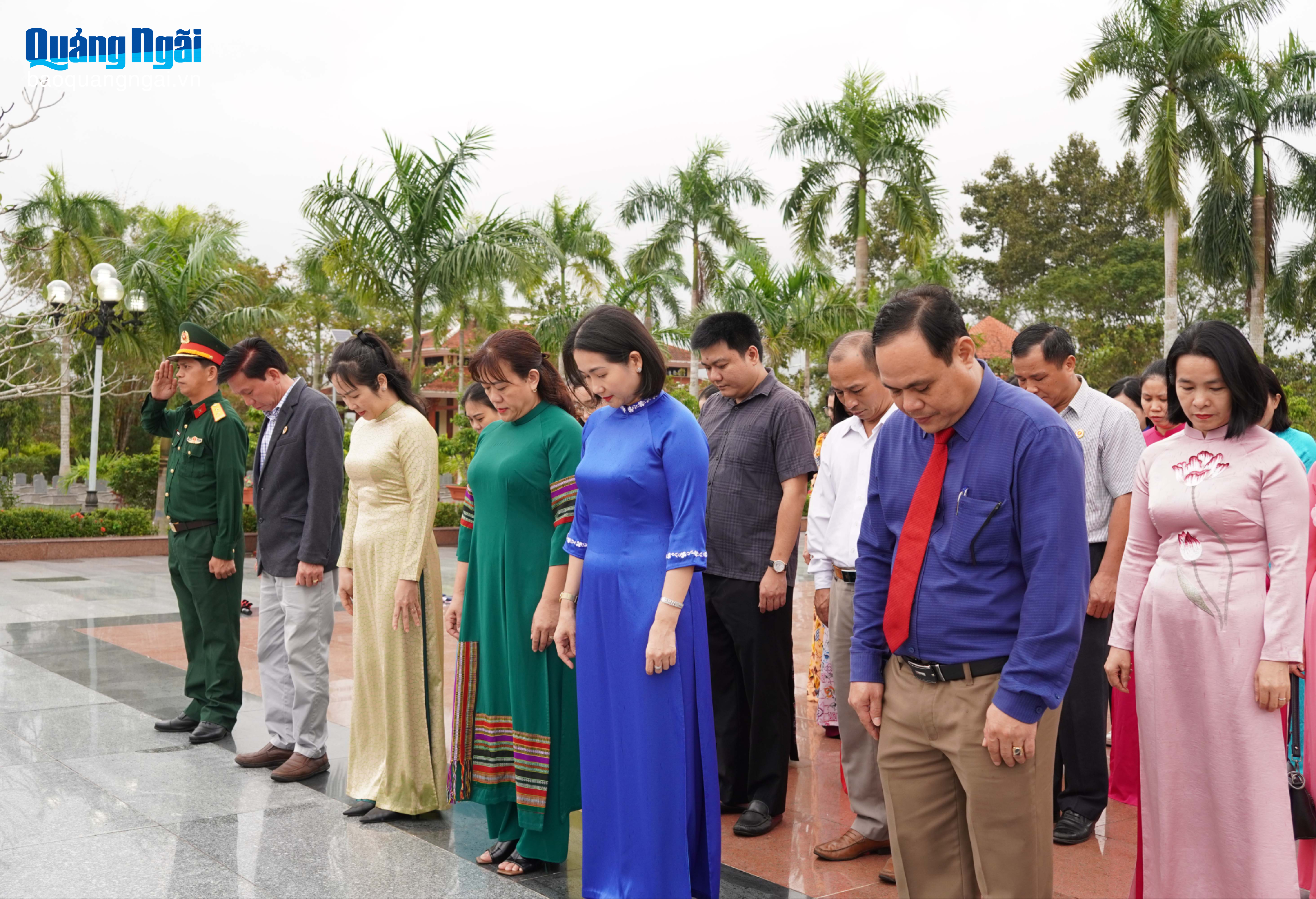 Các đại biểu đã dành phút mặc niệm tưởng nhớ công lao to lớn của các Anh hùng liệt sĩ đã dũng cảm chiến đấu, hy sinh vì sự nghiệp đấu tranh giải phóng dân tộc, thống nhất đất nước. Sau lễ dâng hoa, dâng hương, các đại biểu đã thành kính thắp hương trên từng phần mộ liệt sĩ tại Nghĩa trang.