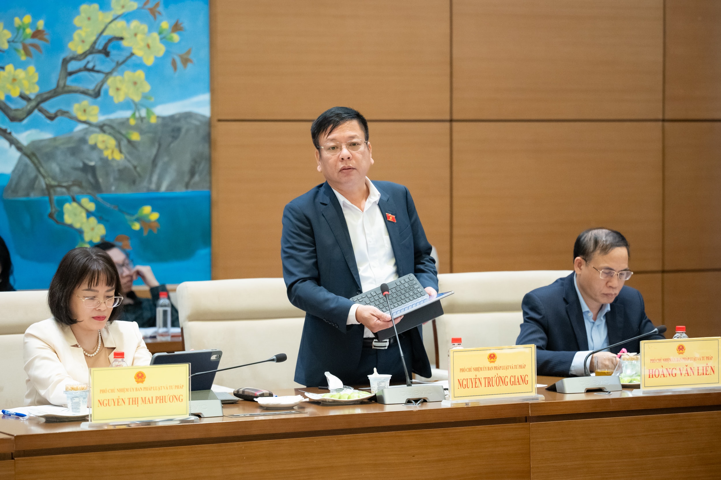 Phó Chủ nhiệm Ủy ban Pháp luật và Tư pháp Nguyễn Trường Giang phát biểu
