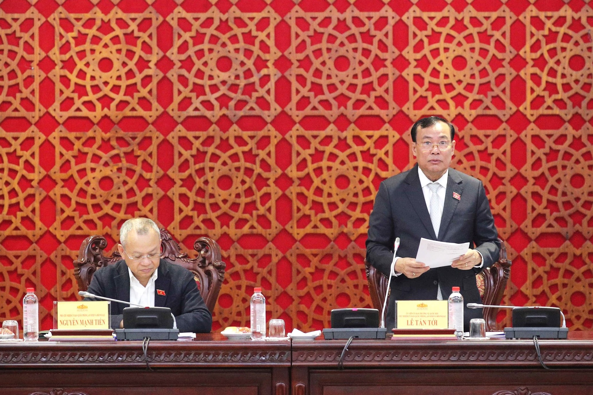 Phát biểu tại Phiên họp, Chủ nhiệm Ủy ban Quốc phòng, An ninh và Đối ngoại Lê Tấn Tới nêu rõ, năm 2025 tình hình thế giới diễn biến khá nhanh, phức tạp và khó đoán định. Đây cũng là năm chuẩn bị cho Đại hội XIV của Đảng, chuẩn bị bầu cử Quốc hội Khóa XVI và HĐND các cấp nhiệm kỳ 2026 - 2031, tổng kết 5 năm thực hiện đường lối đối ngoại của Đại hội Đảng XIII và đánh dấu sự đột phá về công tác tổ chức bộ máy của Đảng, Nhà nước ta, trong đó có việc sắp xếp lại công tác đối ngoại của Đảng, Quốc hội và Nhà nước.