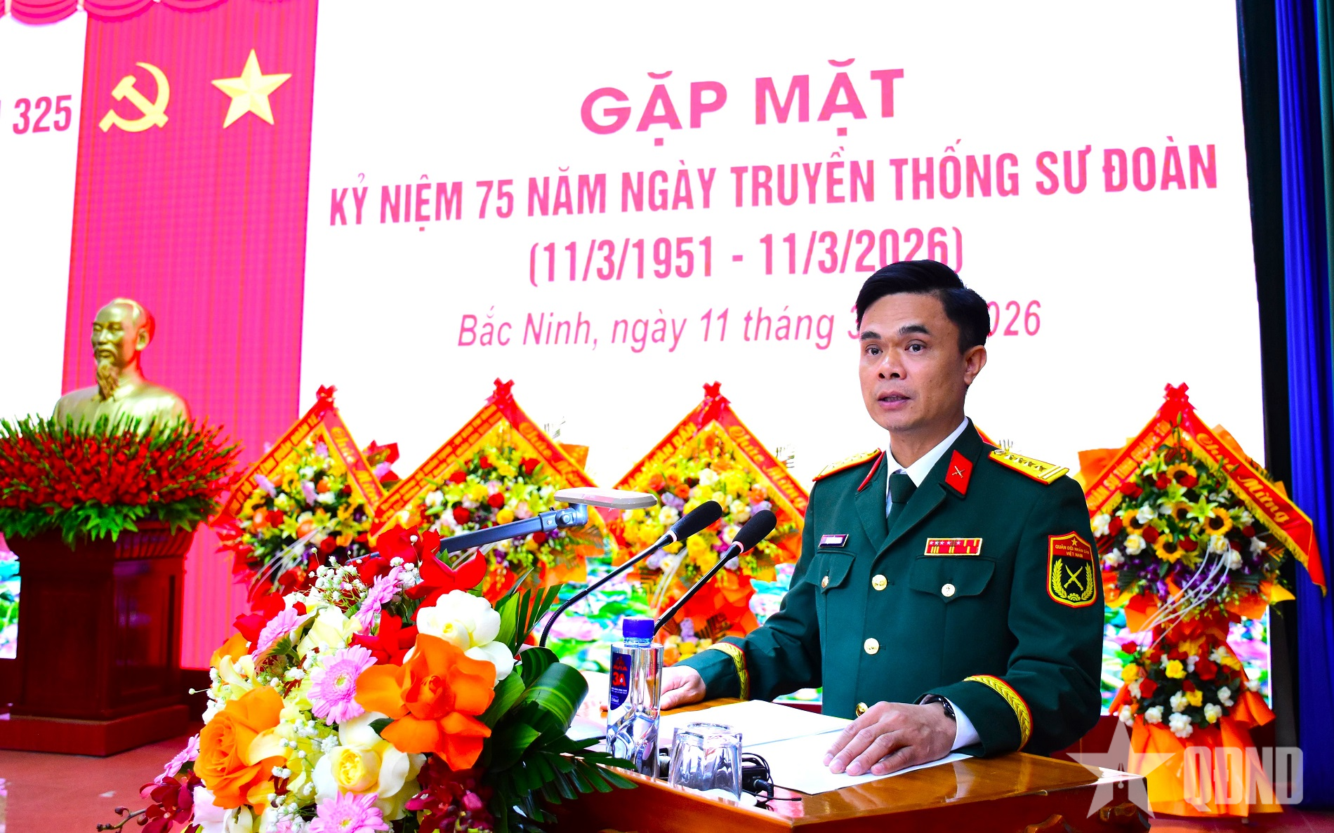 Đại tá Nguyễn Mạnh Cường, Sư đoàn trưởng Sư đoàn 325 trình bày diễn văn gặp mặt kỷ niệm.
