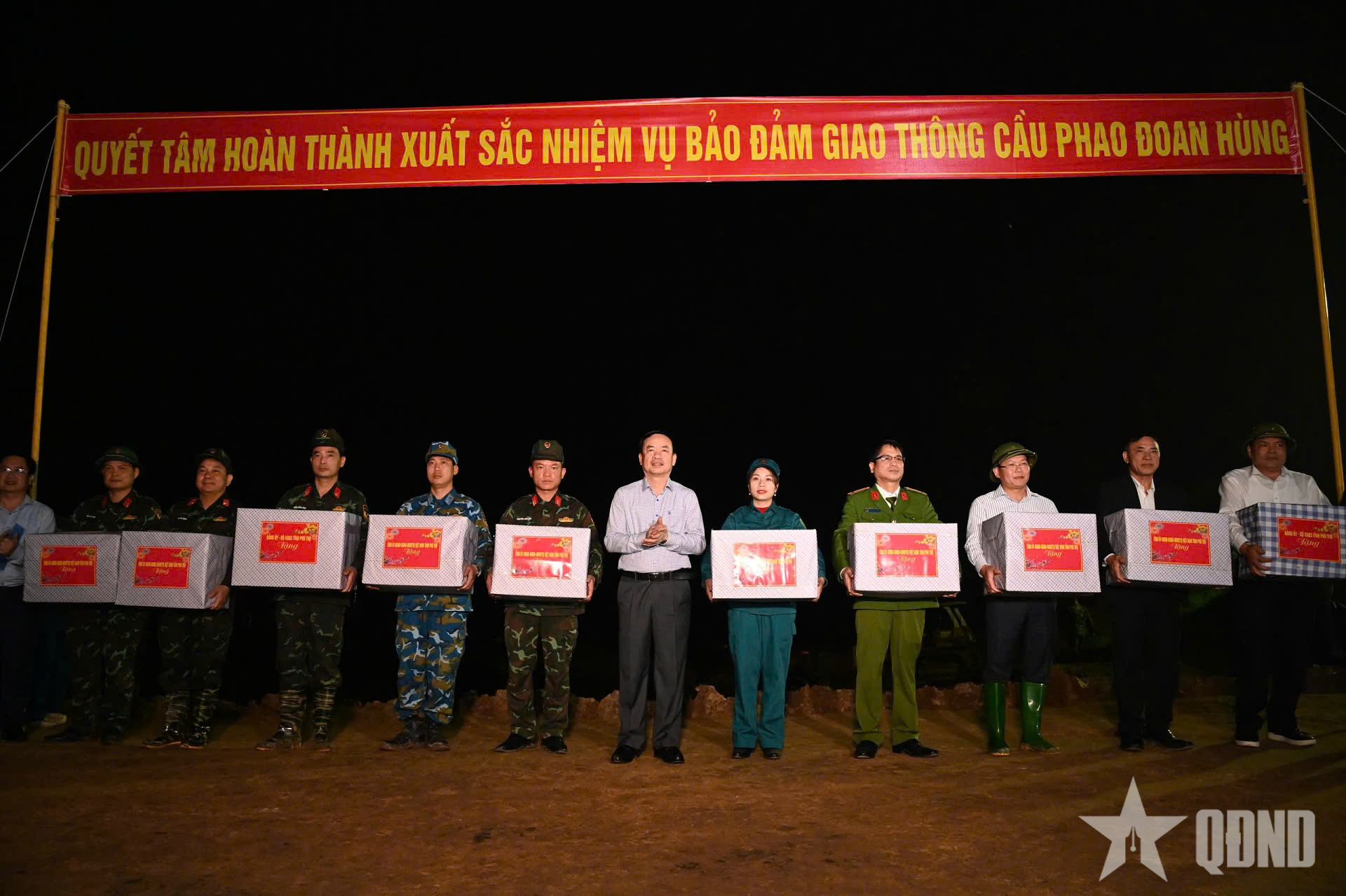 Bộ tư lệnh Quân khu 2 tặng quà các lực lượng tham gia thi công cầu phao.