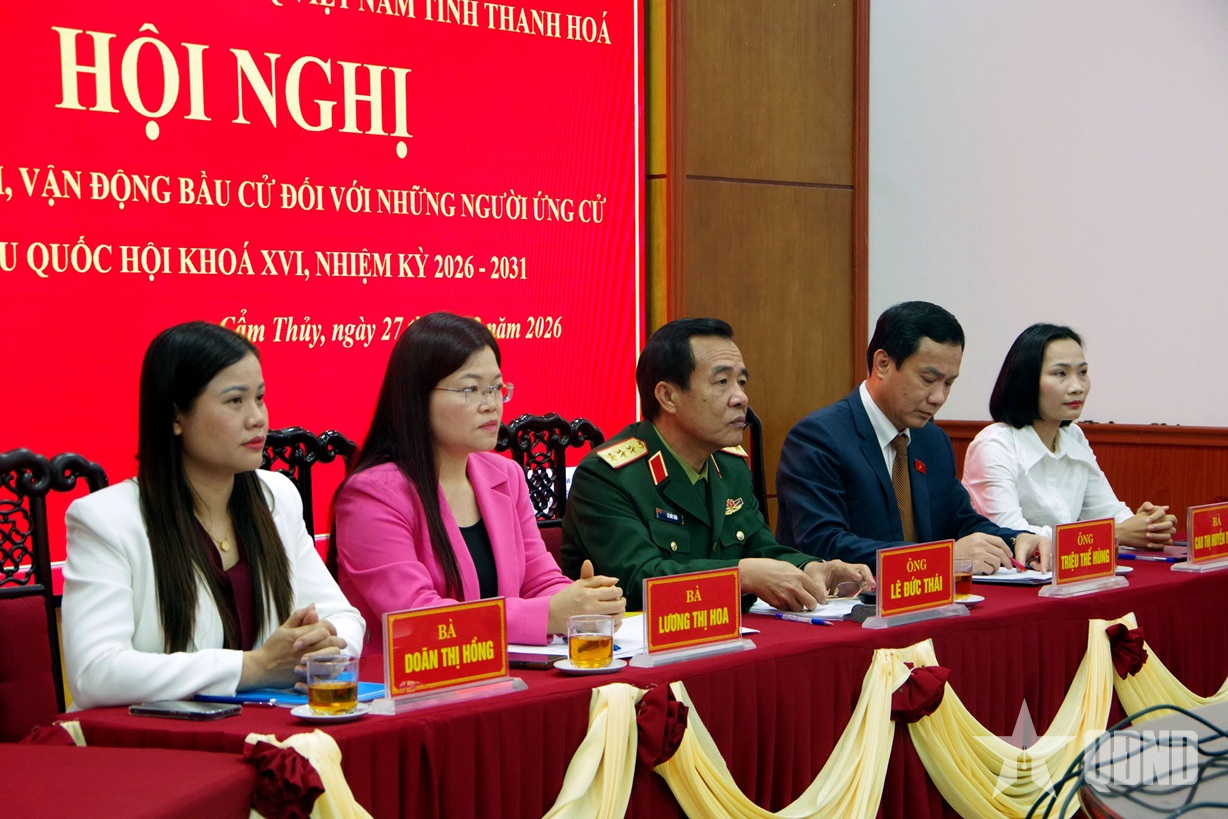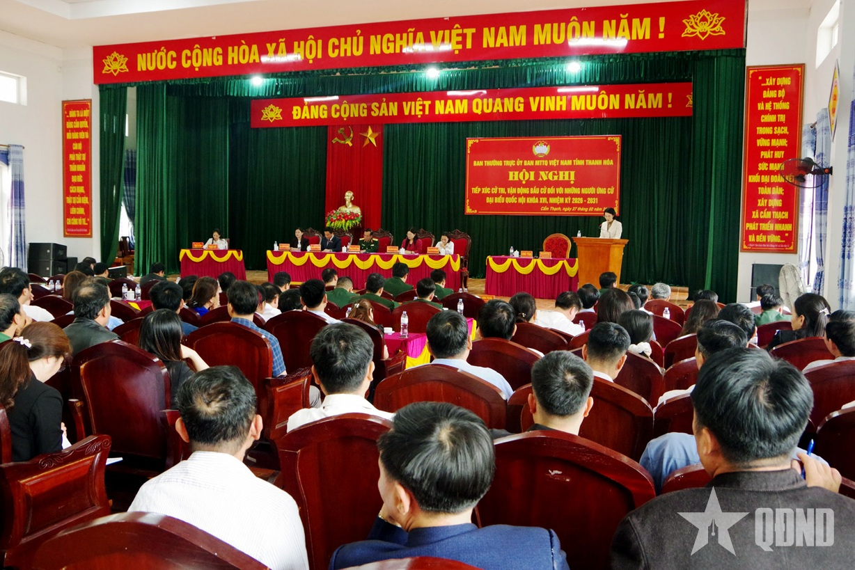 Phát biểu tại hội nghị, Thượng tướng Lê Đức Thái, Ủy viên Trung ương Đảng, Thứ trưởng Bộ Quốc phòng trình bày chương trình hành động trước đông đảo cử tri 14 xã trên địa bàn tỉnh. Hội nghị được tổ chức trực tiếp tại các xã Cẩm Thủy, Cẩm Thạch và kết nối trực tuyến tới 12 xã: Vĩnh Lộc, Tây Đô, Biện Thượng, Cẩm Tú, Cẩm Vân, Cẩm Tân, Kim Tân, Vân Du, Ngọc Trạo, Thạch Bình, Thành Vinh, Thạch Quảng (thuộc 3 huyện cũ Vĩnh Lộc, Cẩm Thủy và Thạch Thành).