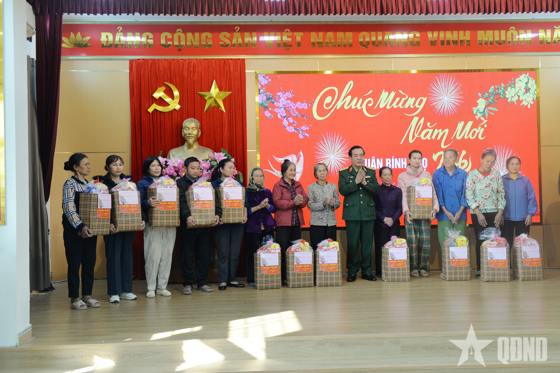 Thượng tướng Lê Đức Thái trao quà Tết tặng các gia đình có hoàn cảnh khó khăn trên địa bàn phường Hiệp Hòa, tỉnh Quảng Ninh.