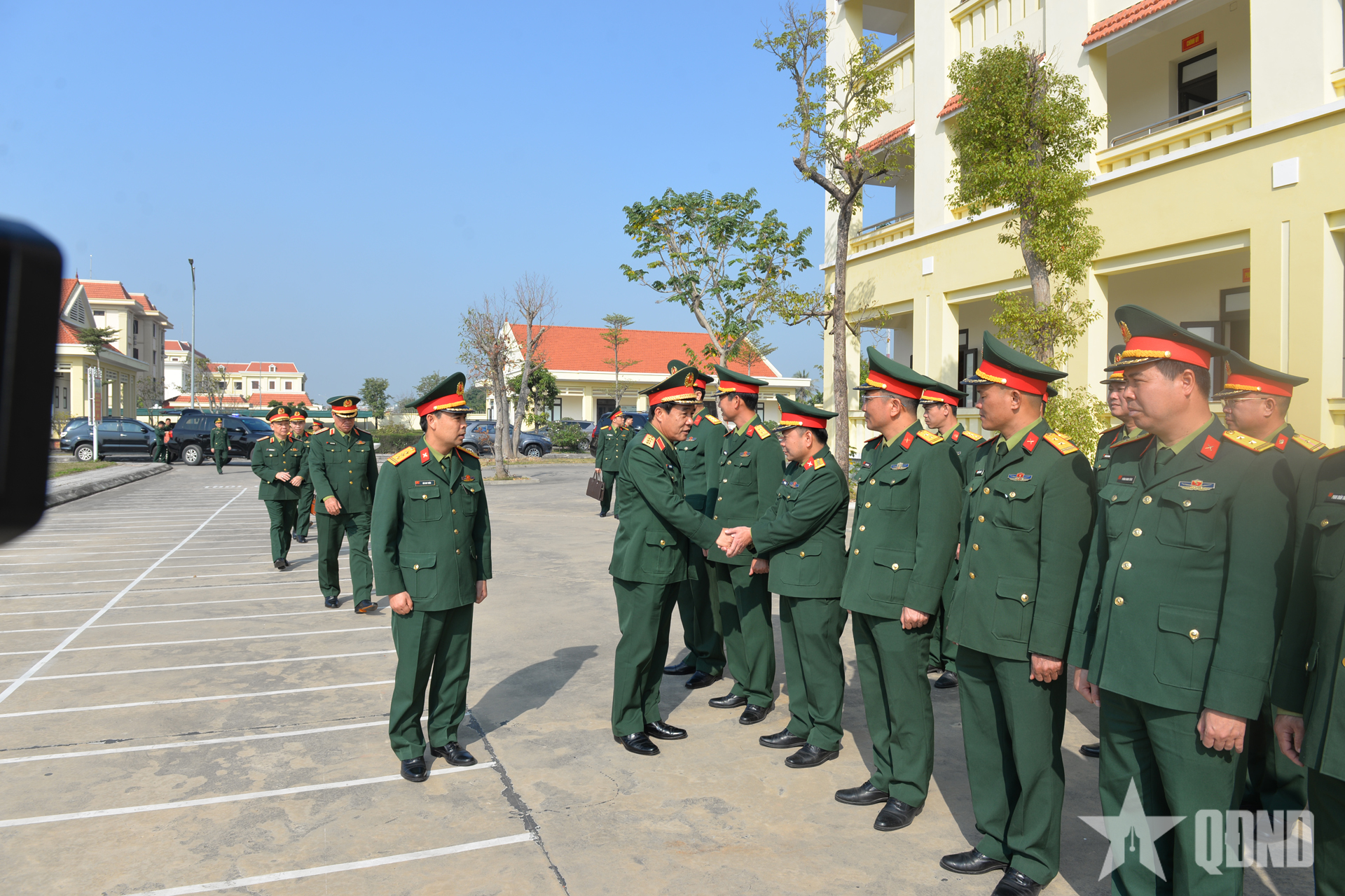 Cán bộ, nhân viên Ban chỉ huy phòng thủ Khu vực 5 - Quảng Yên, Bộ CHQS tỉnh Quảng Ninh đón Thượng tướng Lê Đức Thái và đoàn công tác đến kiểm tra và chúc Tết.