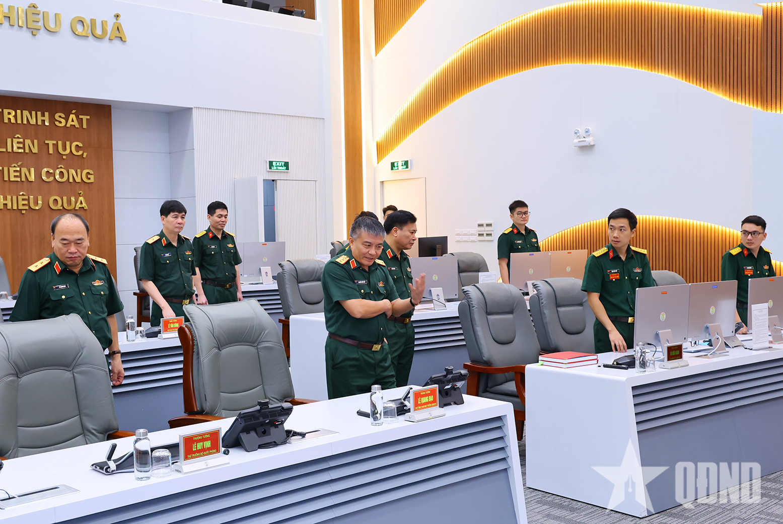 Thủ trưởng Bộ Quốc phòng, Bộ Tổng Tham mưu Quân đội nhân dân Việt Nam kiểm tra vật chất trang bị tại Trung tâm dữ liệu Bộ Quốc phòng.
