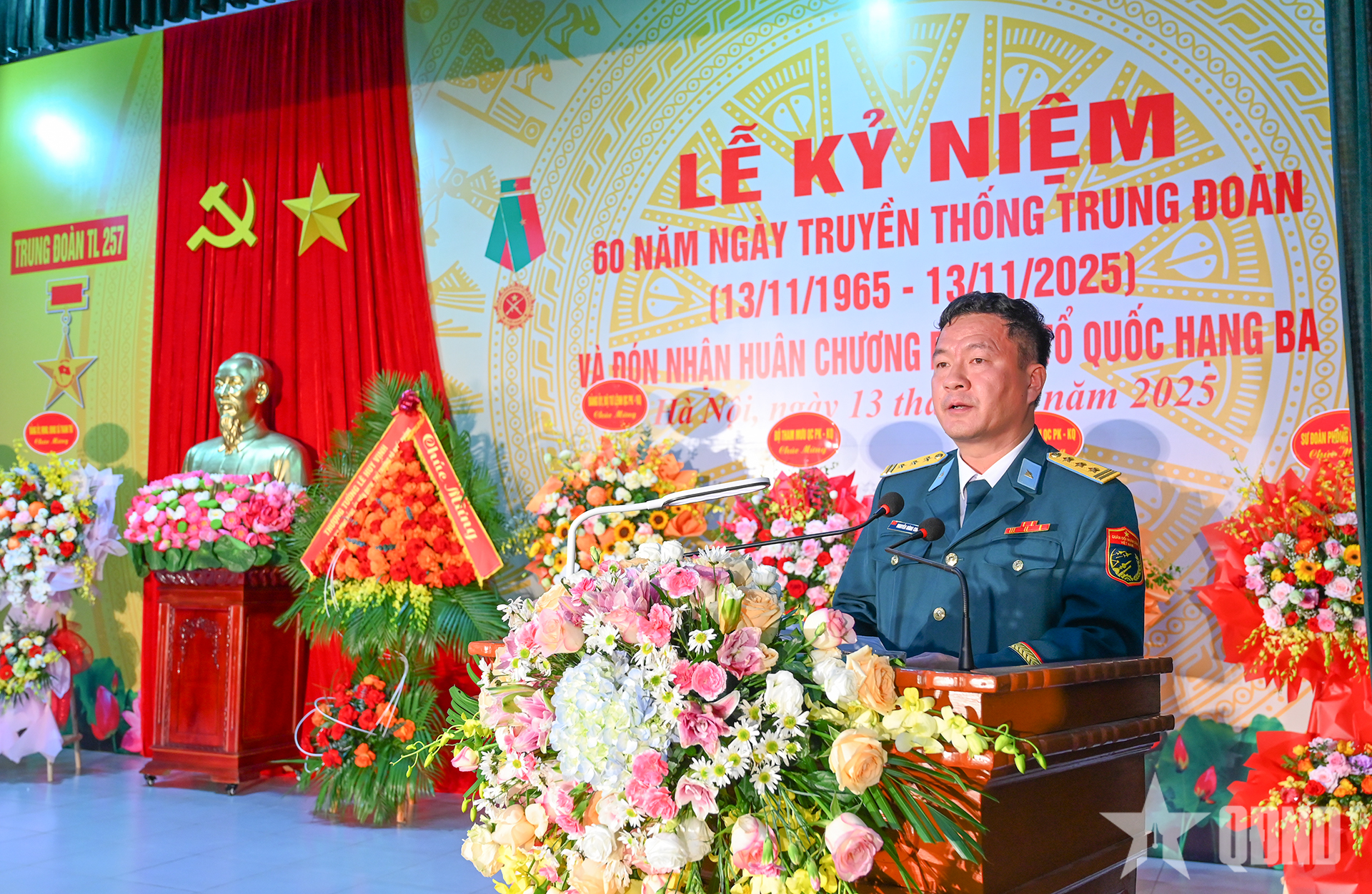 Phát biểu tại buổi lễ, thay mặt Thường vụ Đảng ủy, Bộ tư lệnh Quân chủng Phòng không - Không quân, Trung tướng Trần Ngọc Quyến biểu dương và chúc mừng những thành tích cán bộ, chiến sĩ Trung đoàn 257 đạt được trong 60 năm qua.