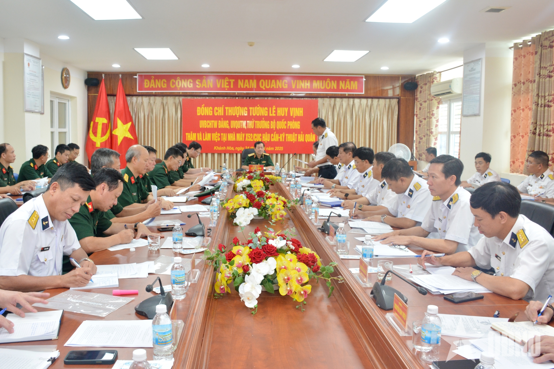 Qua kiểm tra thực tế, Thượng tướng Lê Huy Vịnh biểu dương kết quả trong thực hiện nhiệm vụ và công tác sản xuất của Nhà máy X52, đồng thời yêu cầu nhà máy thực hiện đúng các quy trình công nghệ trong sửa chữa trang bị kỹ thuật; làm chủ, khai thác hiệu quả các trang thiết bị đã được đầu tư; tiếp tục tham gia, mở các lớp đào tạo chuyên sâu về chuyên môn kỹ thuật nâng cao trình độ tay nghề; huấn luyện, tin học, ngoại ngữ chuyên ngành kỹ thuật; huấn luyện về an toàn lao động, phòng chống cháy nổ; huấn luyện đấu tranh bảo vệ sức sống tàu, để cùng tham gia nghiệm thu tàu sau sửa chữa; làm tốt công tác chính sách, kịp thời động viên cán bộ, nhân viên và phối hợp chặt chẽ với các cơ quan, đơn vị để thực hiện thắng lợi các nhiệm vụ được giao.