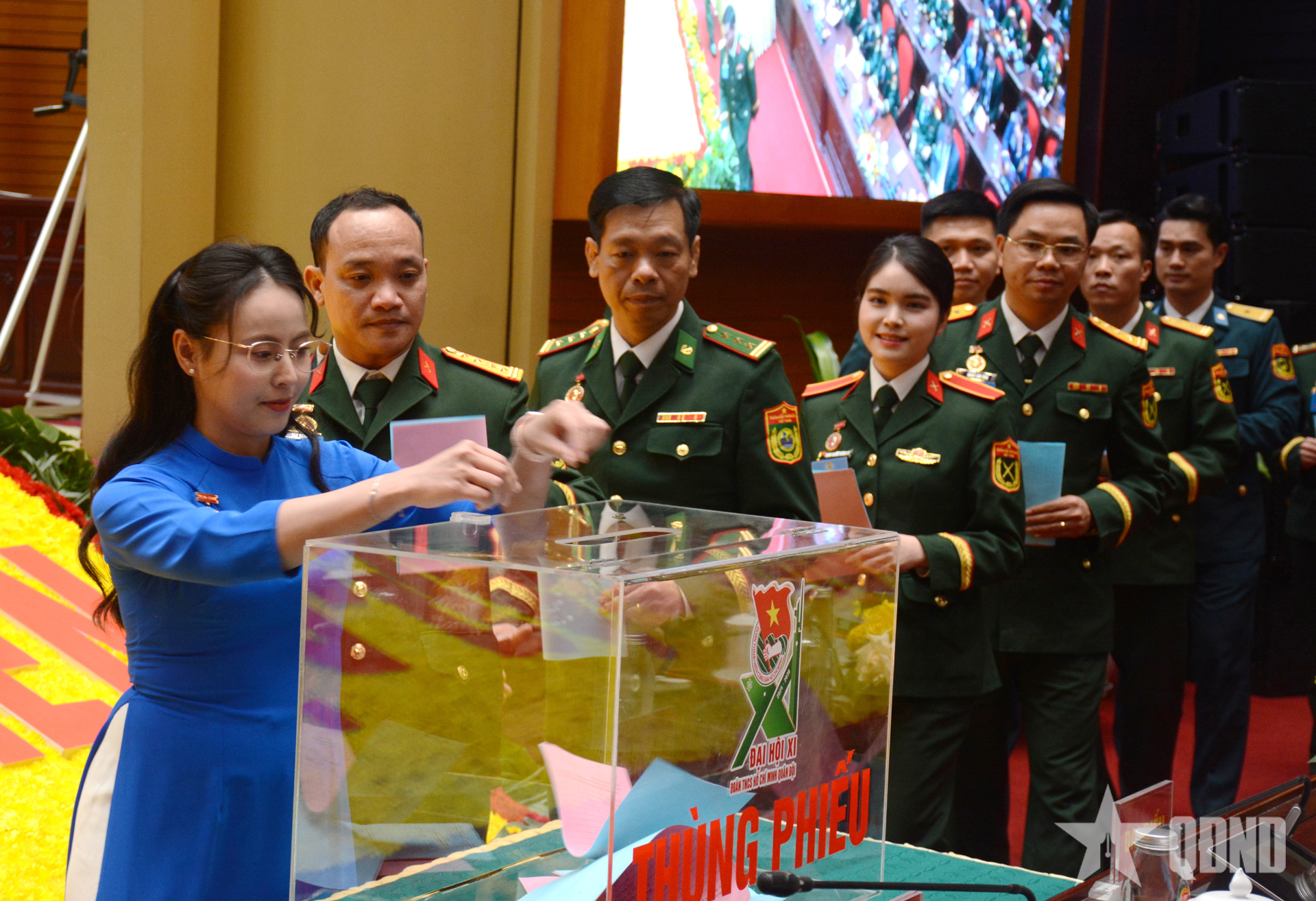 Đoàn chủ tịch, Đoàn thư ký và các đại biểu bỏ phiếu bầu Đoàn đại biểu đi dự Đại hội Đoàn toàn quốc lần thứ XIII.