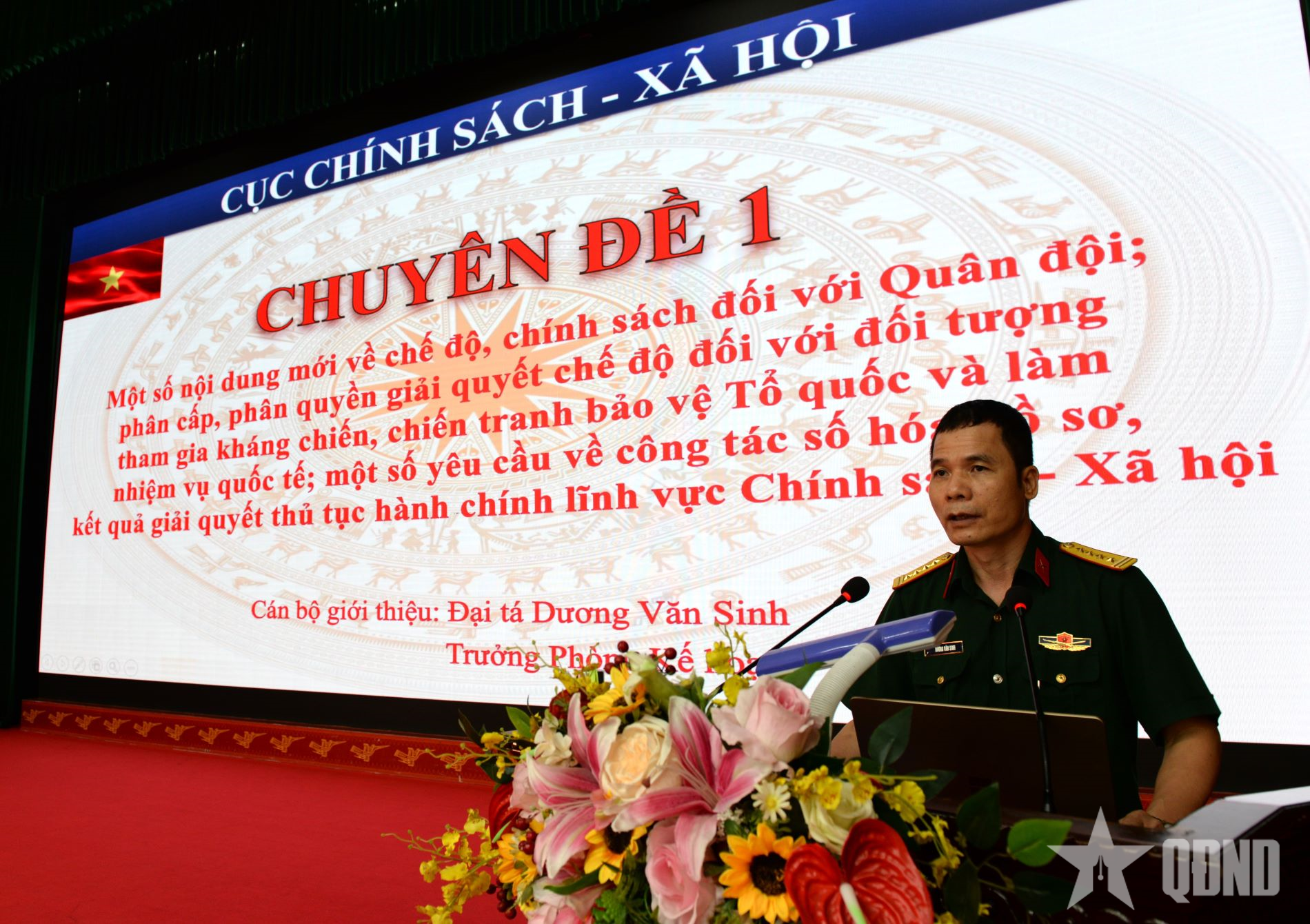 Báo cáo viên Phòng Kế hoạch (Cục Chính sách - Xã hội) trình bày chuyên đề tại hội nghị.