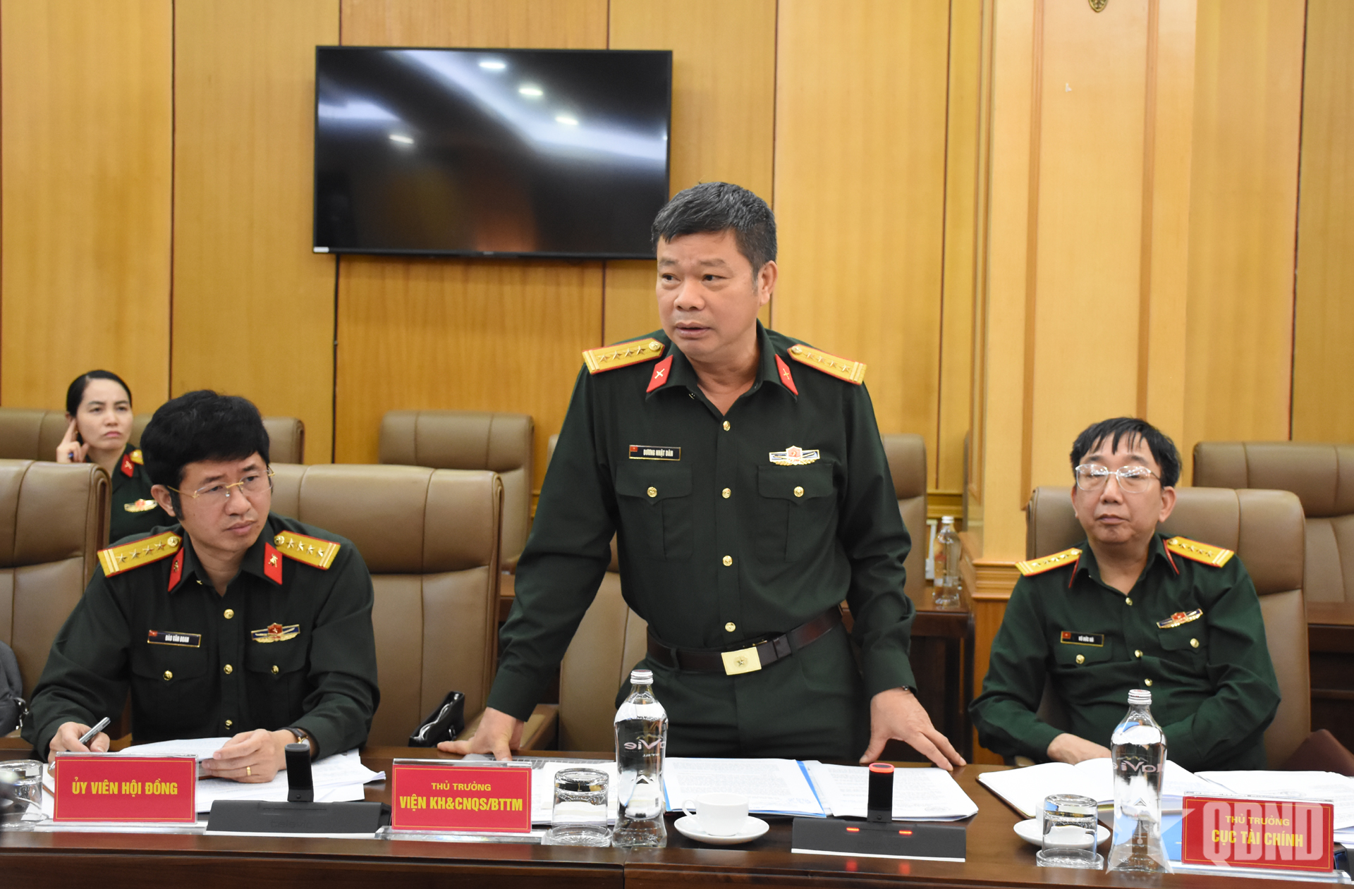 Đại biểu Cục Khoa học Quân sự phát biểu tại hội nghị.