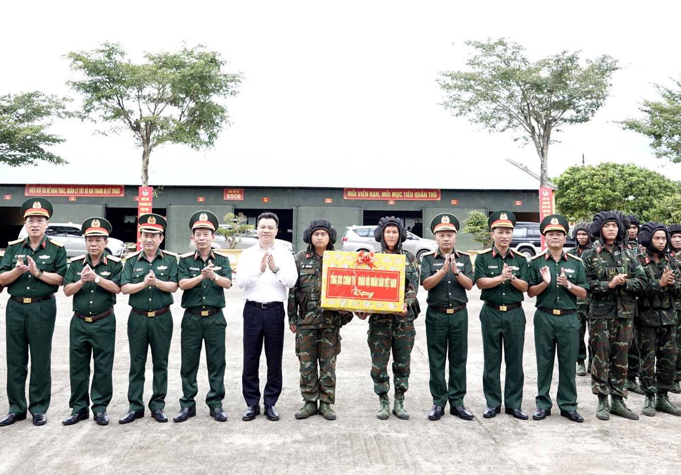 Thượng tướng Lê Quang Minh cùng lãnh đạo Ủy ban An toàn giao thông quốc gia và đoàn công tác trao quà động viên cán bộ, chiến sĩ Trung đoàn Bộ binh cơ giới 48.