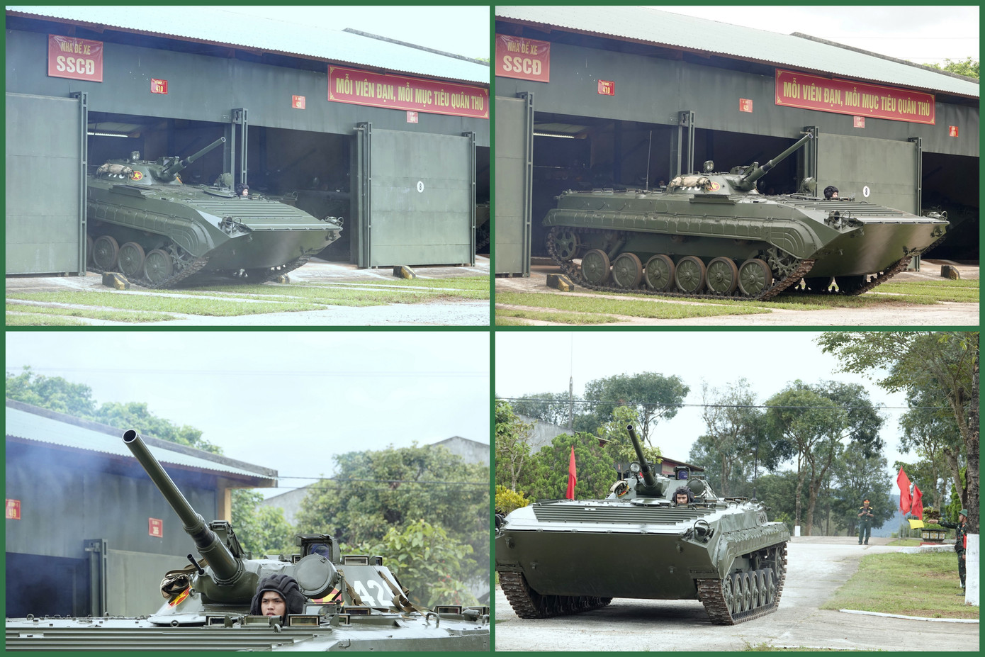 Kíp xe thuộc Đại đội 1, Tiểu đoàn 1, Trung đoàn 48 thực hành xuất xe cơ động thực hiện nhiệm vụ sẵn sàng chiến đấu.