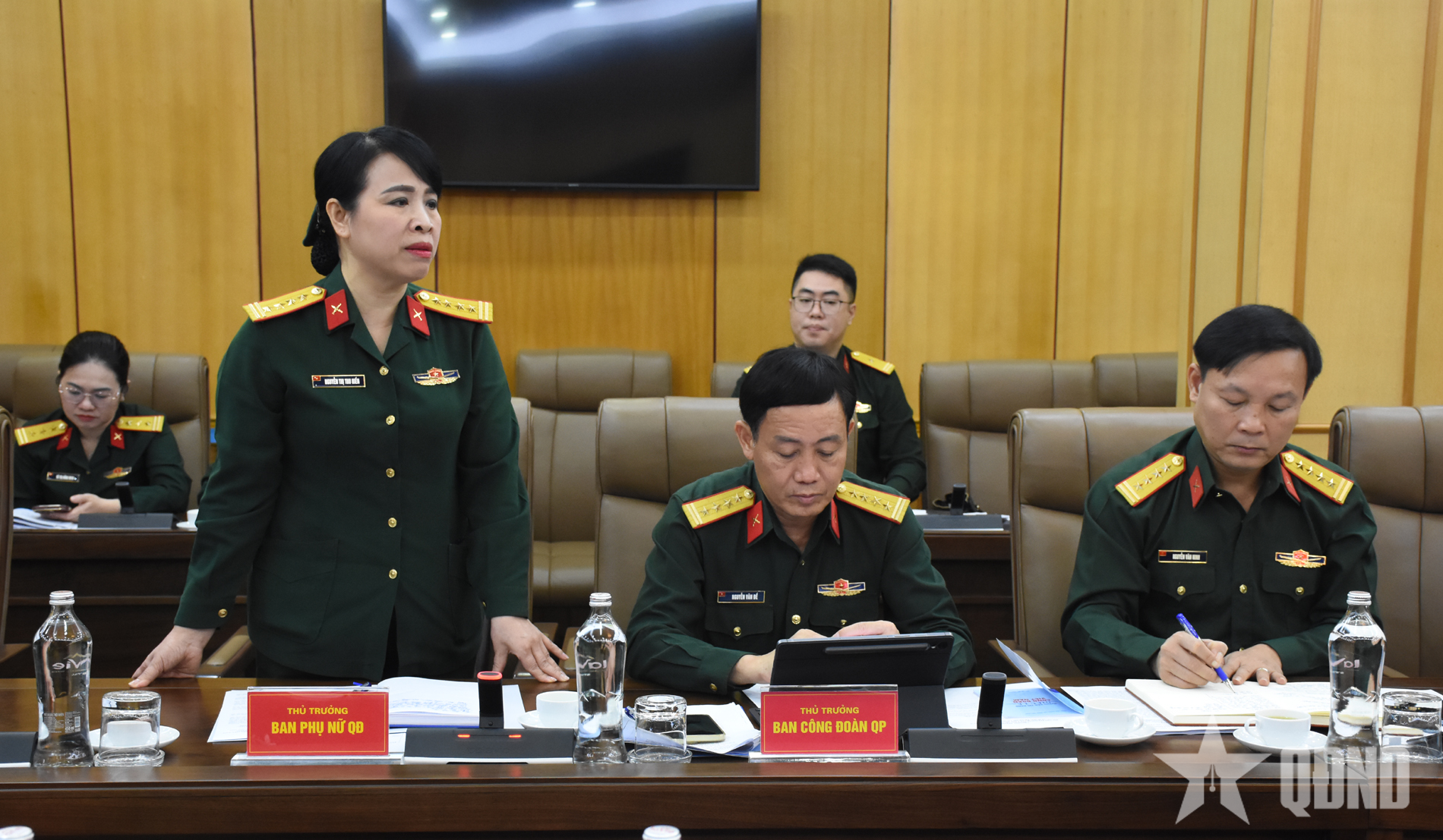 Đại biểu Ban Phụ nữ Quân đội phát biểu.