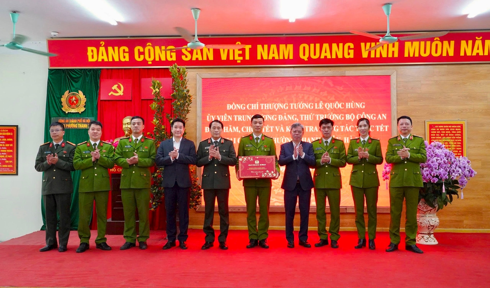 Trong không khí của những ngày đầu xuân năm mới, Thứ trưởng Lê Quốc Hùng ghi nhận, biểu dương nhưng thành tích đã đạt được trong năm 2025 và gửi lời chúc mừng năm mới tốt đẹp nhất tới toàn thể cán bộ chiến sĩ Công an phường Thanh Xuân và gia đình.