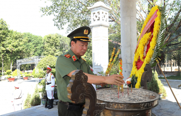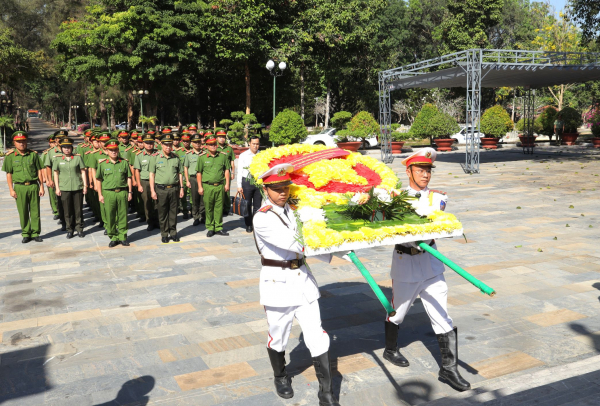 Trong không khí trang nghiêm, đoàn đã dành phút mặc niệm bày tỏ sự tri ân sâu sắc đến các Anh hùng - Liệt sĩ đã hy sinh vì sự nghiệp giải phóng dân tộc, thống nhất đất nước. Đoàn đã dâng hương trước Tượng đài bảo vệ an ninh Tổ quốc, Bia Chiến thắng, nơi ghi danh hơn 14.000 cán bộ, chiến sĩ CAND Việt Nam đã anh dũng hy sinh vì độc lập dân tộc, thống nhất Tổ quốc; dâng hương trước Tượng đài Bác Hồ, Tượng đài cố Bộ trưởng Phạm Hùng tại Khu di tích lịch sử, văn hóa Ban An ninh Trung ương Cục miền Nam.