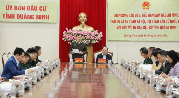 Đoàn công tác số 2, Tiểu ban Bảo đảm an ninh, trật tự và an toàn xã hội, Hội đồng Bầu cử quốc gia do Thượng tướng Lê Tấn Tới, Phó Trưởng Tiểu ban Thường trực làm Trưởng đoàn làm việc với Ủy ban bầu cử tỉnh Quảng Ninh.