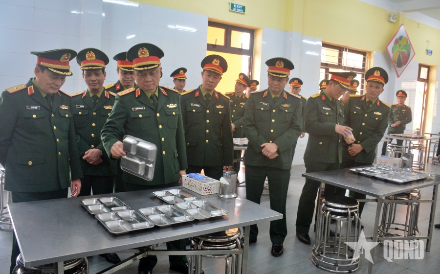 Thượng tướng Nguyễn Quang Ngọc kiểm tra khu vực bếp ăn Tiểu đoàn 3, Trung đoàn 2, Sư đoàn 3, Quân khu 1.
