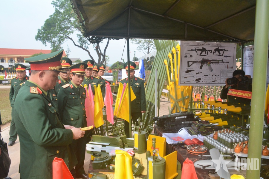 Thượng tướng Nguyễn Quang Ngọc tham quan mô hình học cụ của Trung đoàn 2, Sư đoàn 3, Quân khu 1.