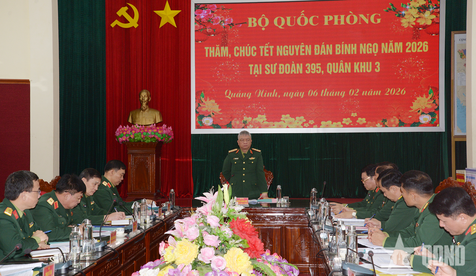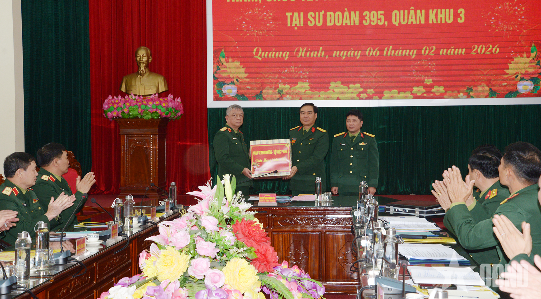 Kết luận buổi làm việc, đồng chí Thứ trưởng Bộ Quốc phòng yêu cầu Sư đoàn 395 tiếp tục duy trì nghiêm chế độ trực SSCĐ, nhất là trong dịp Tết Nguyên đán 2026; bầu cử Đại biểu Quốc hội khóa XVI, Đại biểu Hội đồng nhân dân các cấp nhiệm kỳ 2026-2031 và các sự kiện chính trị của Đảng, Nhà nước, Quân đội; làm tốt công tác giáo dục quán triệt các nghị quyết, chỉ thị của cấp ủy Đảng; tổ chức vui Xuân, đón Tết cho bộ đội bảo đảm vui tươi, lành mạnh, tiết kiệm, phù hợp với điều kiện của đơn vị và an toàn tuyệt đối mọi mặt.
