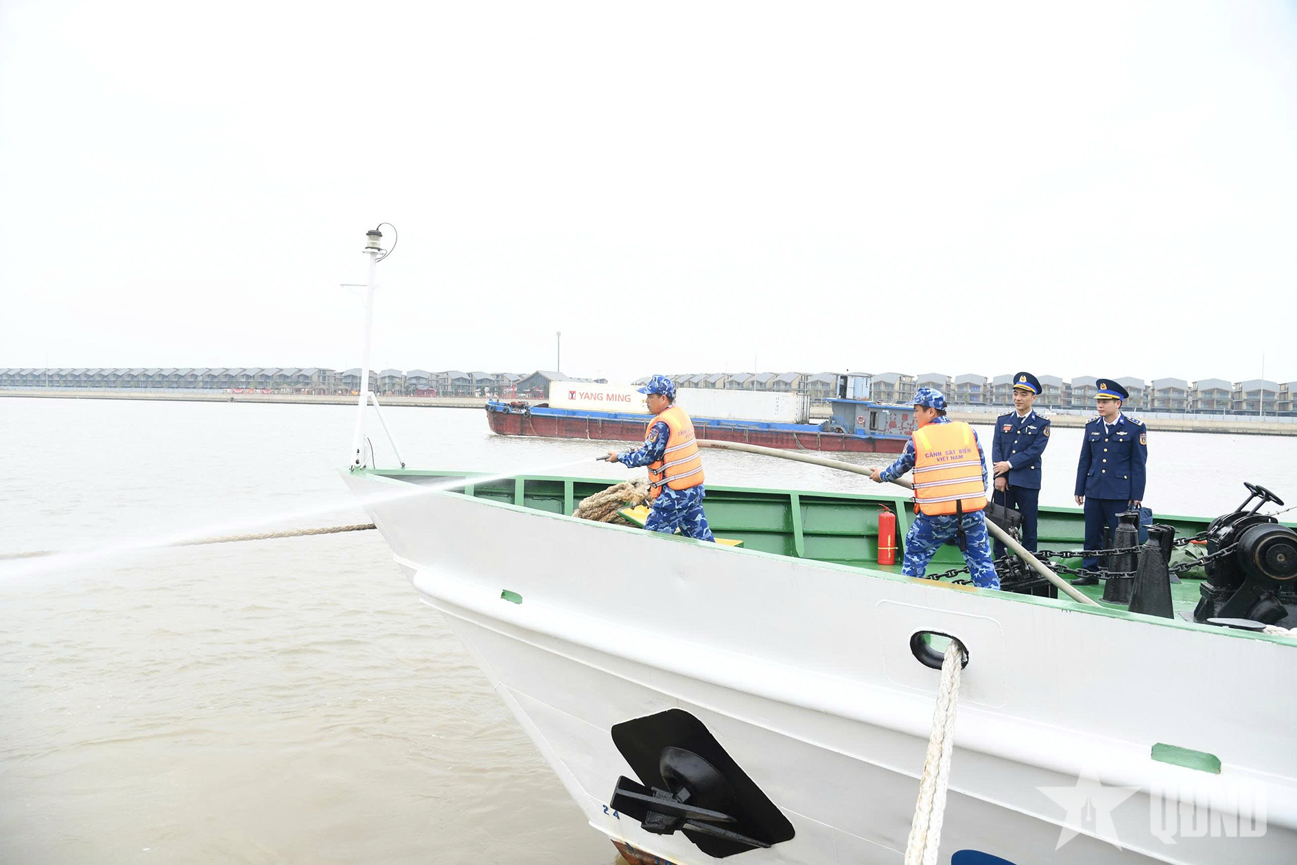 Lực lượng Vùng Cảnh sát biển 1 huấn luyện bảng bố trí bảo vệ sức sống tàu tại các tàu trực SSCĐ.