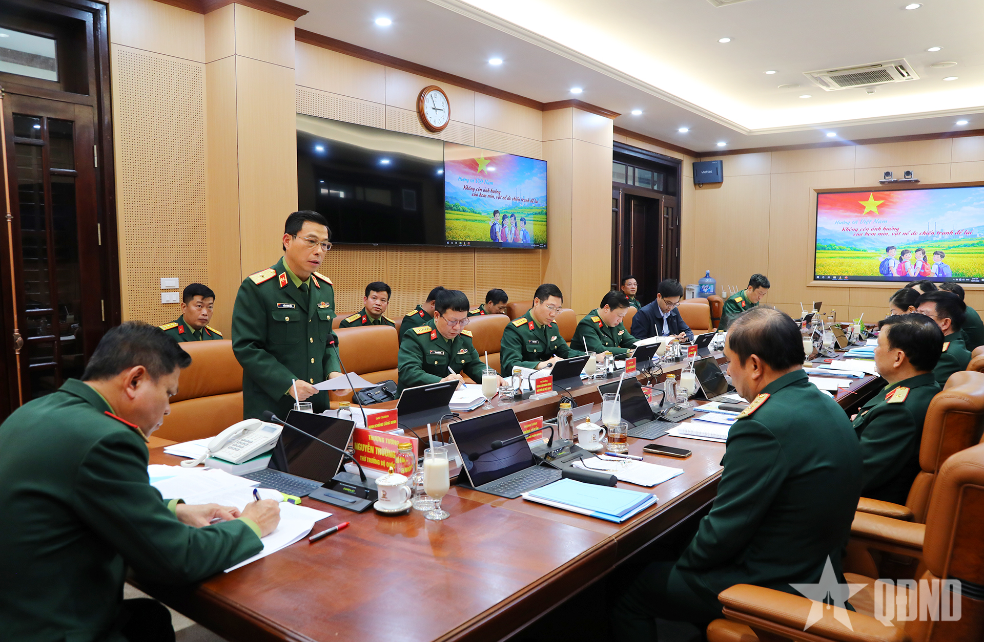 Đồng thời, Thượng tướng Nguyễn Trường Thắng yêu cầu Binh chủng Công binh, VNMAC và các cơ quan, đơn vị, theo nhiệm vụ được phân công, nêu cao tinh thần trách nhiệm, tích cực rà soát công tác chuẩn bị phục vụ hội nghị. Trong đó, tiếp tục phối hợp hoàn thiện báo cáo trung tâm, phim tài liệu và video clip minh họa, dự thảo kịch bản điều hành.