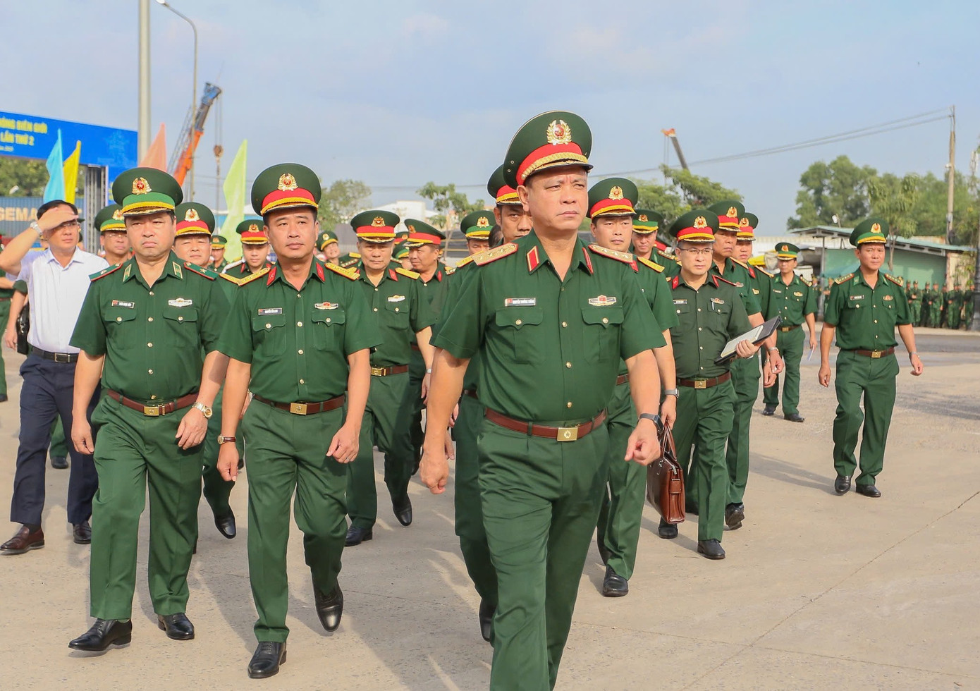 Tham gia đoàn công tác có Thiếu tướng Trần Ngọc Hữu - Phó Tư lệnh Bộ đội Biên phòng, Đại tá Nguyễn Tấn Linh - Phó Tư lệnh Quân khu 7, cùng lãnh đạo UBND tỉnh Tây Ninh.