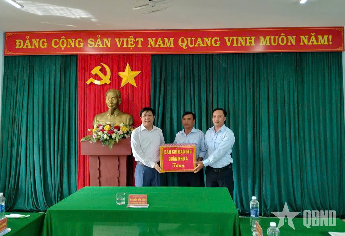 Thiếu tướng Lê Văn Trung, Phó chính ủy Quân khu 4 trao quà tặng Đội Quy tập 584.