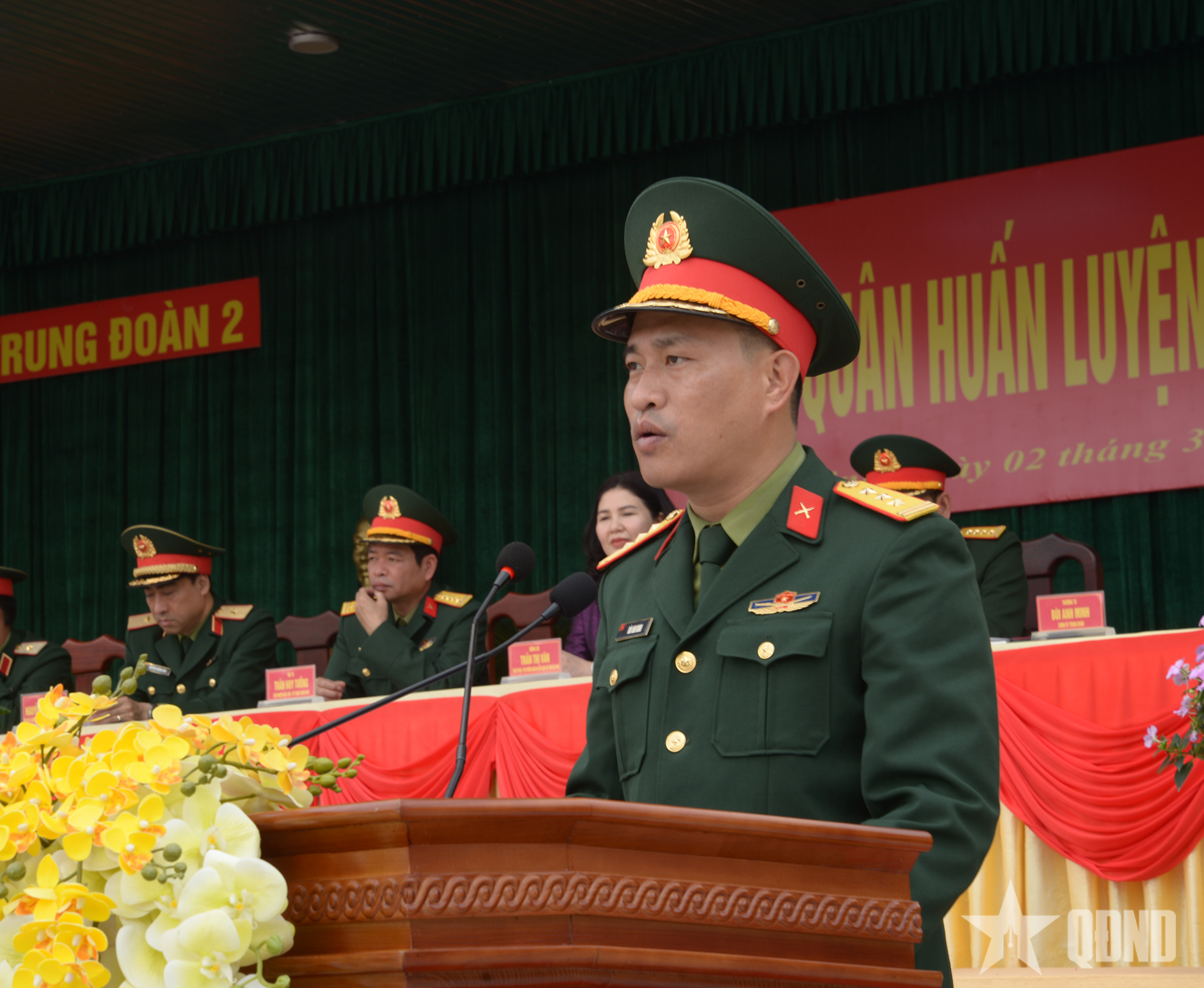 Trung tá Nguyễn Văn Trang, Trung đoàn trưởng Trung đoàn 2 quán triệt Mệnh lệnh huấn luyện tại lễ ra quân huấn luyện.
