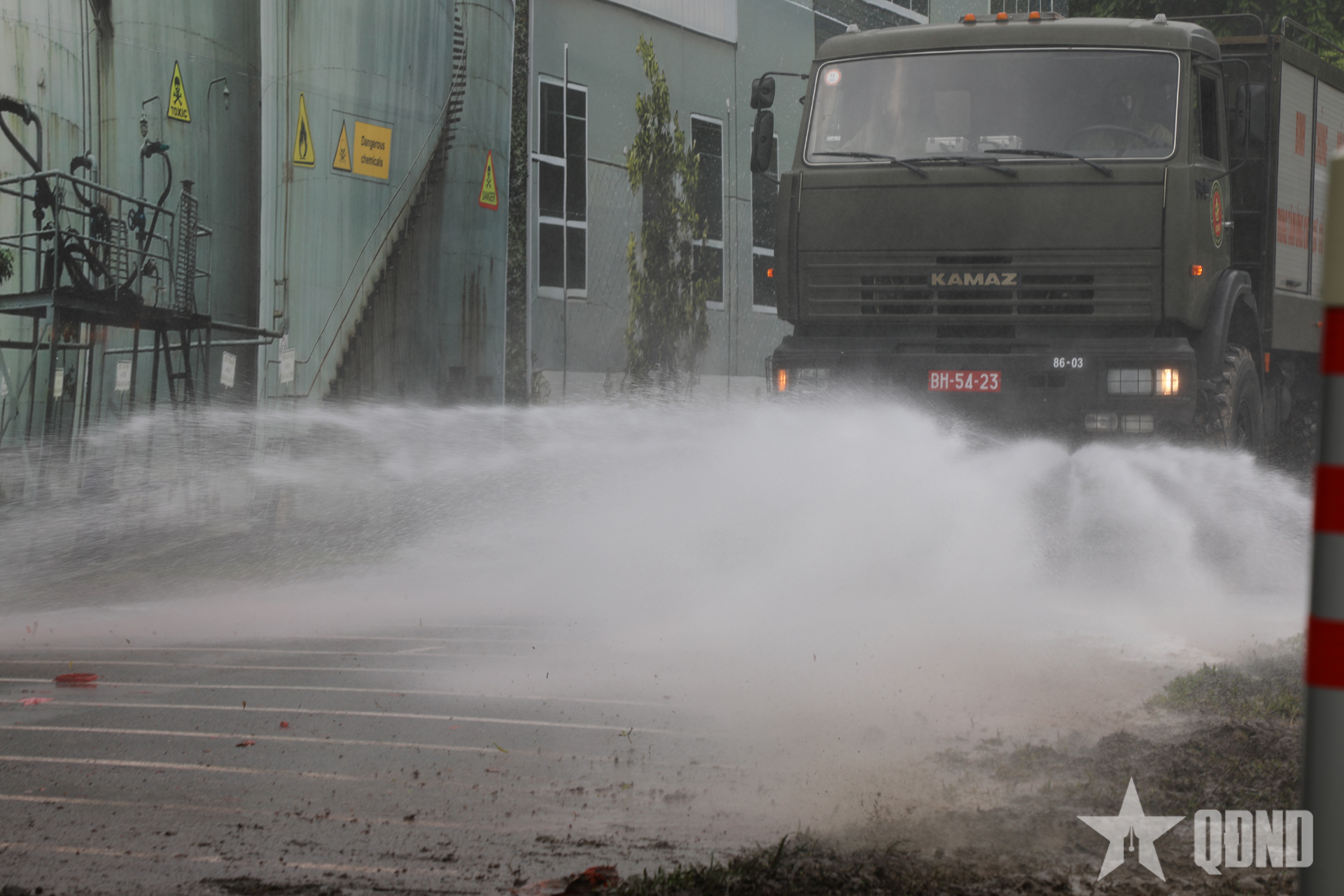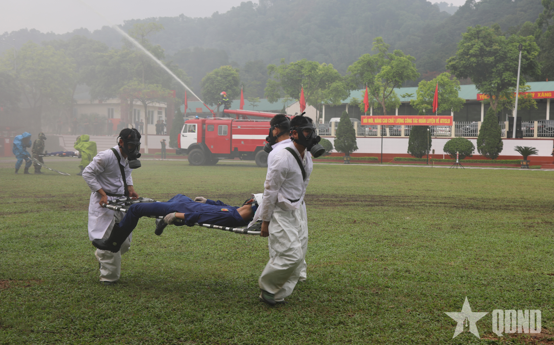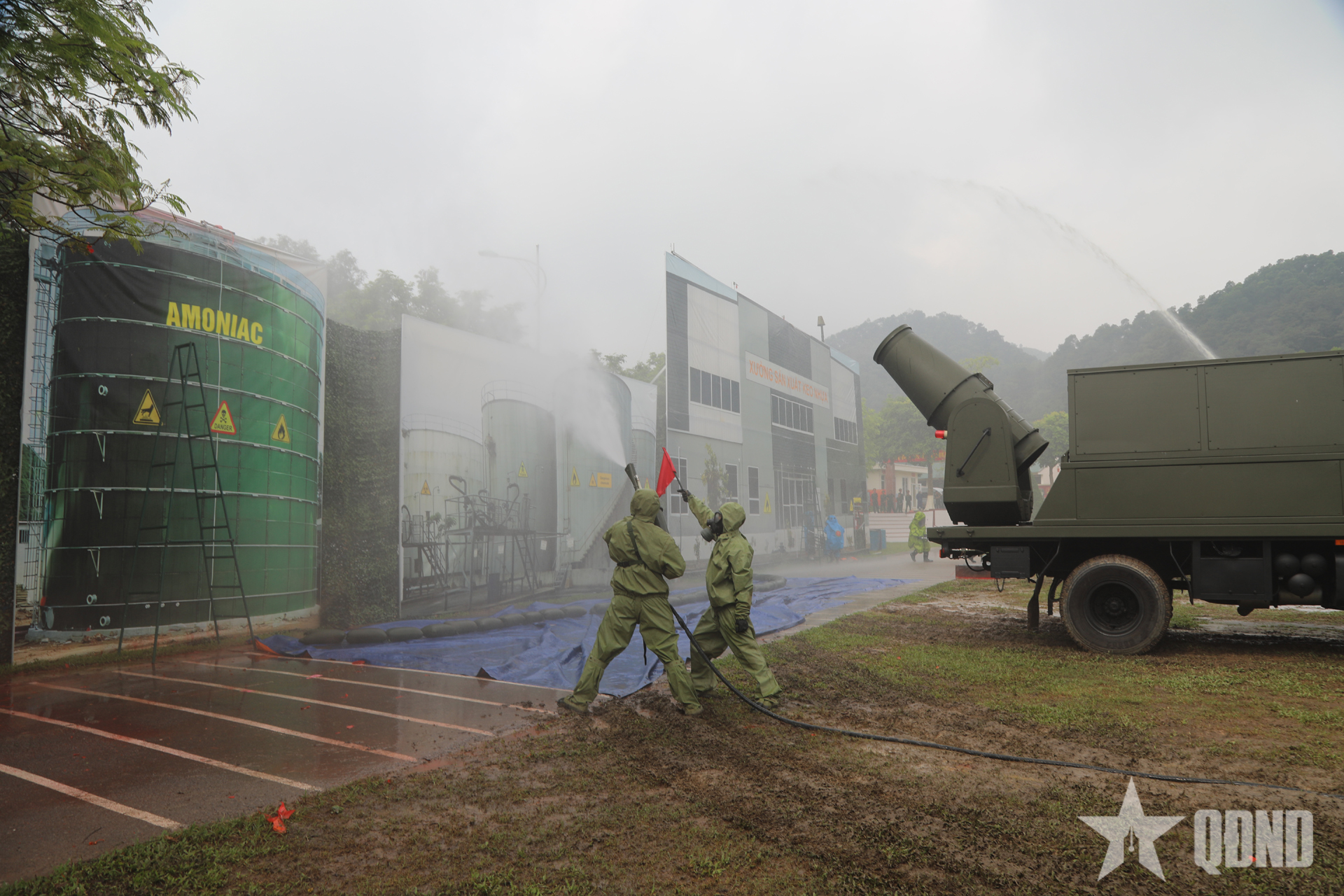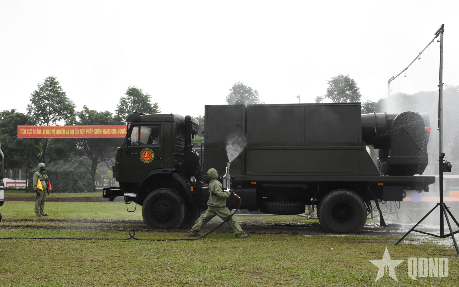 Một số hình ảnh cán bộ, chiến sĩ Lữ đoàn 86 (Binh chủng Hóa học) thao diễn phương án ứng phó sự cố hóa chất độc, phóng xạ và môi trường.