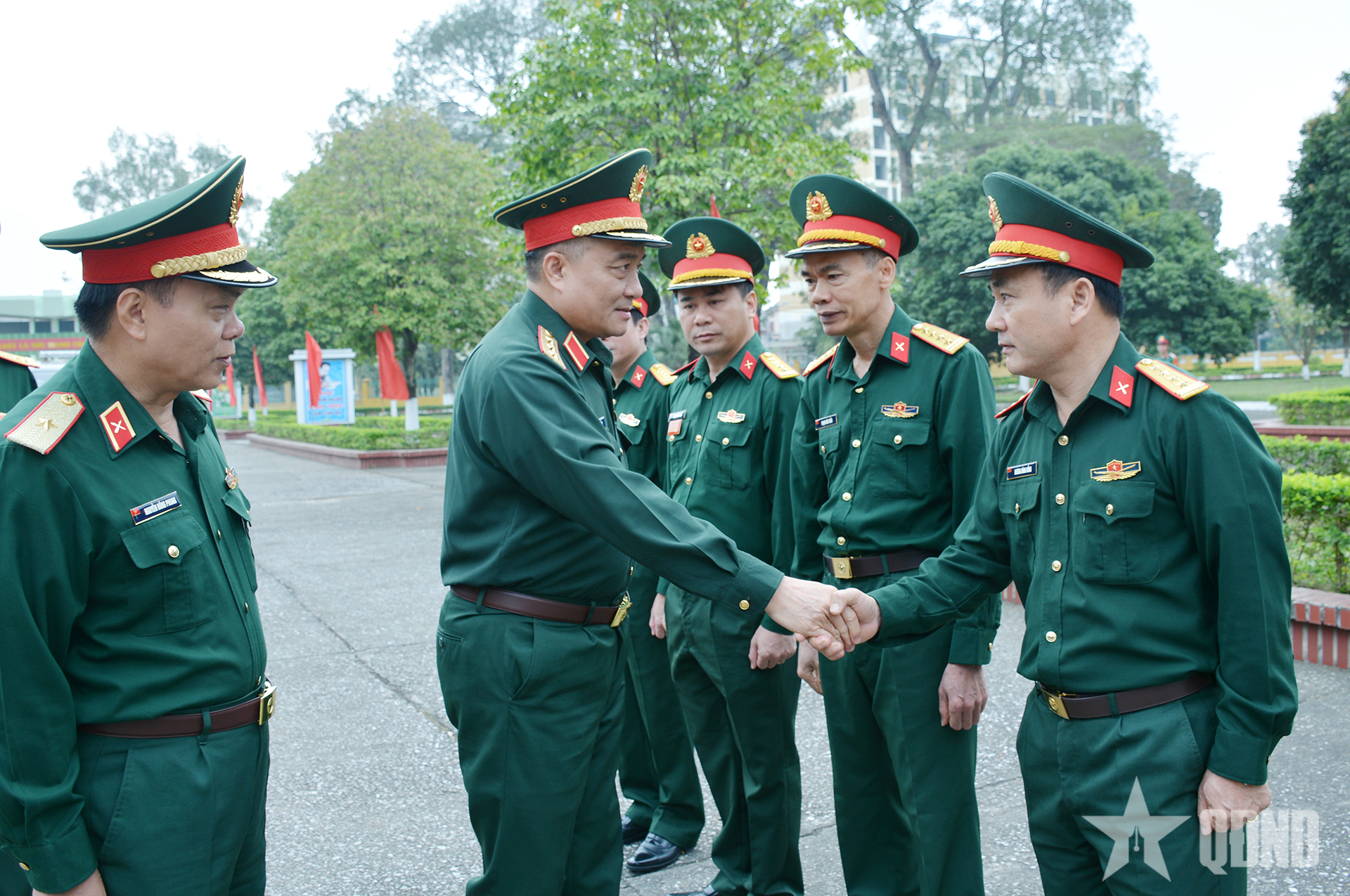 Lãnh đạo, chỉ huy Bộ tư lệnh Pháo binh - Tên lửa và Trường Sĩ quan Pháo binh đón Thượng tướng Nguyễn Văn Hiền.