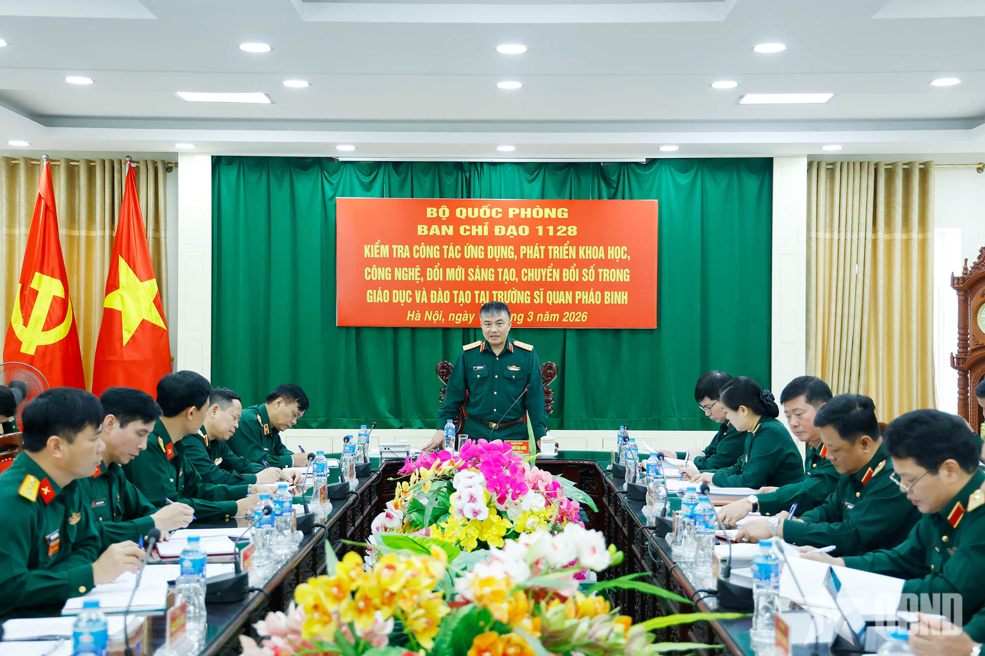 Thượng tướng Nguyễn Văn Hiền nhấn mạnh, Trường Sĩ quan Pháo binh tiếp tục đẩy mạnh quán triệt, triển khai thực hiện nghiêm túc, hiệu quả các nghị quyết, kết luận, chương trình, kế hoạch của cấp trên về phát triển KHCN, ĐMST và CĐS, phát triển giáo dục và đào tạo. Xây dựng quy định trách nhiệm người đứng đầu, cũng như kế hoạch và lộ trình đưa toàn bộ hoạt động của nhà trường lên môi trường số. Có giải pháp để 100% nhà giáo, cán bộ quản lý giáo dục đạt chuẩn năng lực số và khả năng ứng dụng AI trong giảng dạy, quản lý. Xây dựng Kiến trúc nhà trường thông minh để thể hiện tầm nhìn, quyết tâm và cơ sở đề xuất xây dựng Trường Sĩ quan Pháo binh thông minh.